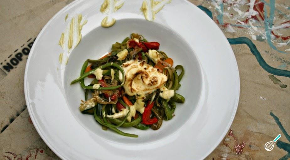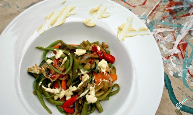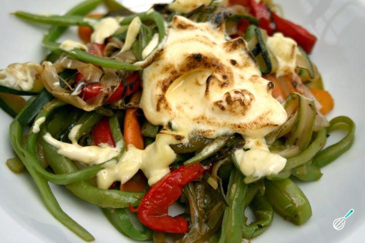 Finalmente, escorra os legumes e sirva-os com um pouco de maionese de wasabi.