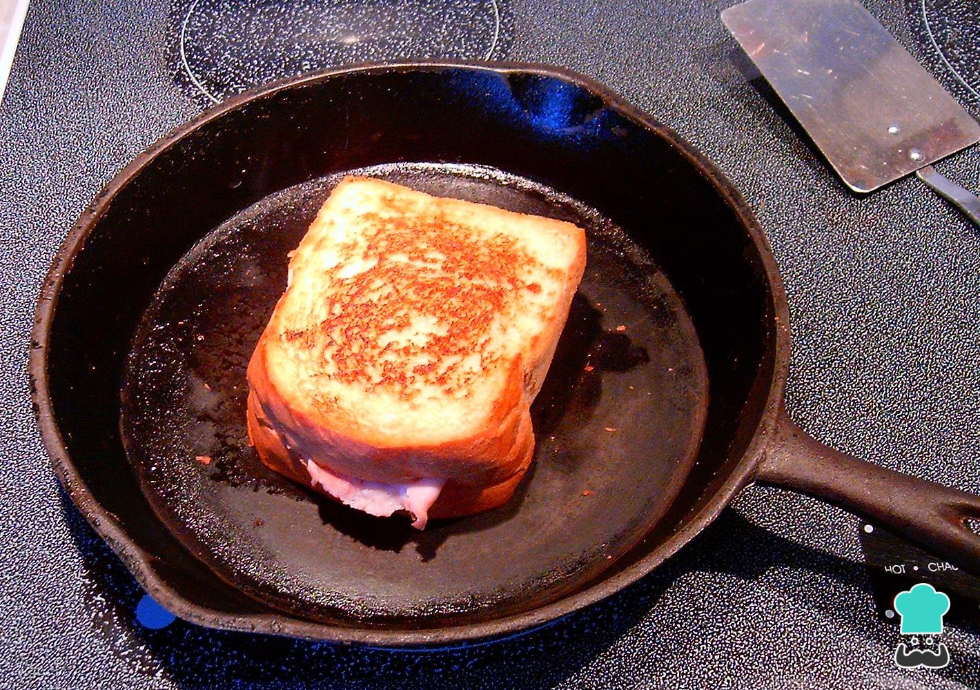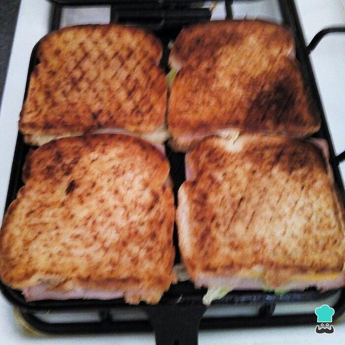 Depois de fechar o sanduíche com queijo e presunto, espalhe manteiga sobre as duas fatias de pão. Em seguida, coloque-a na grelha ou na tostadeira e deixe dourar um pouco de pão para que fique crocante. Repita o procedimento acima com todos os sanduíches.