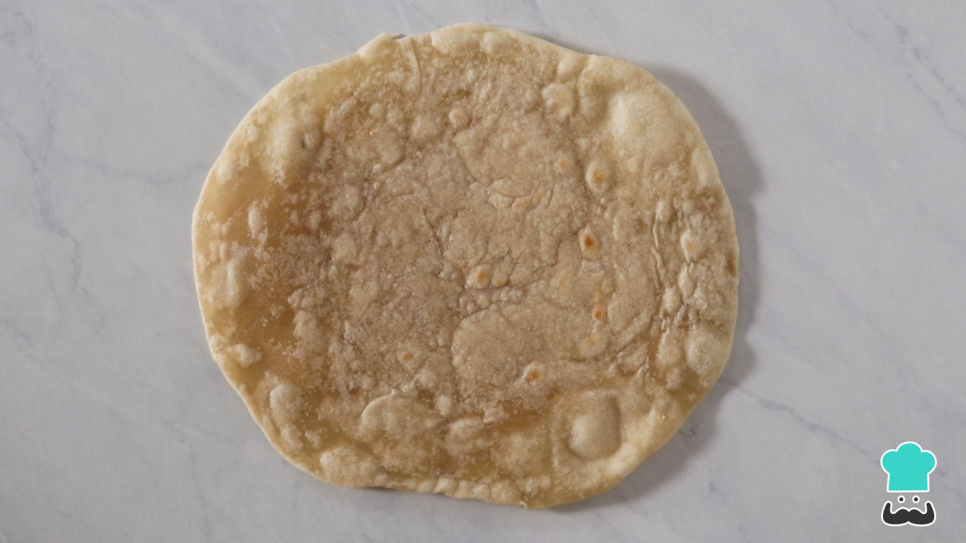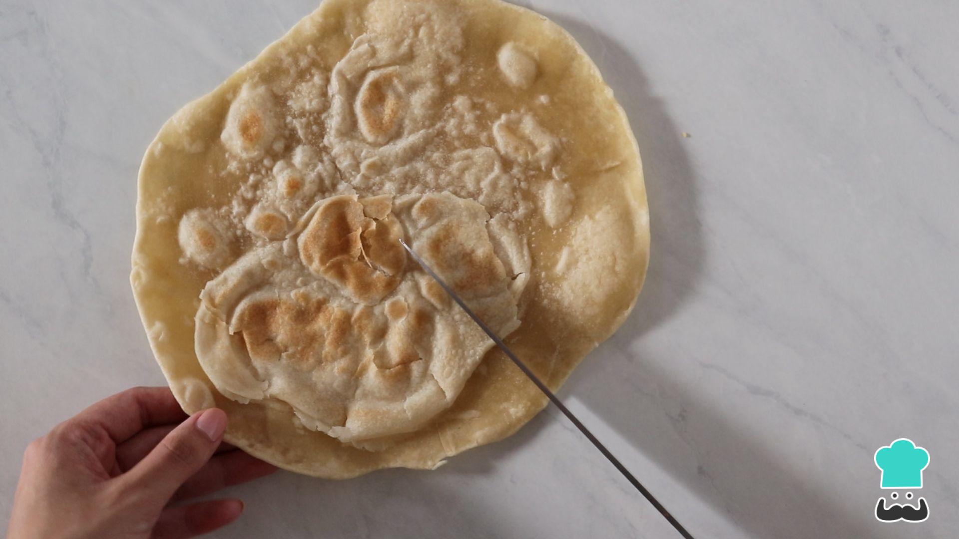 Faça um corte da borda ao centro da tortilla.
