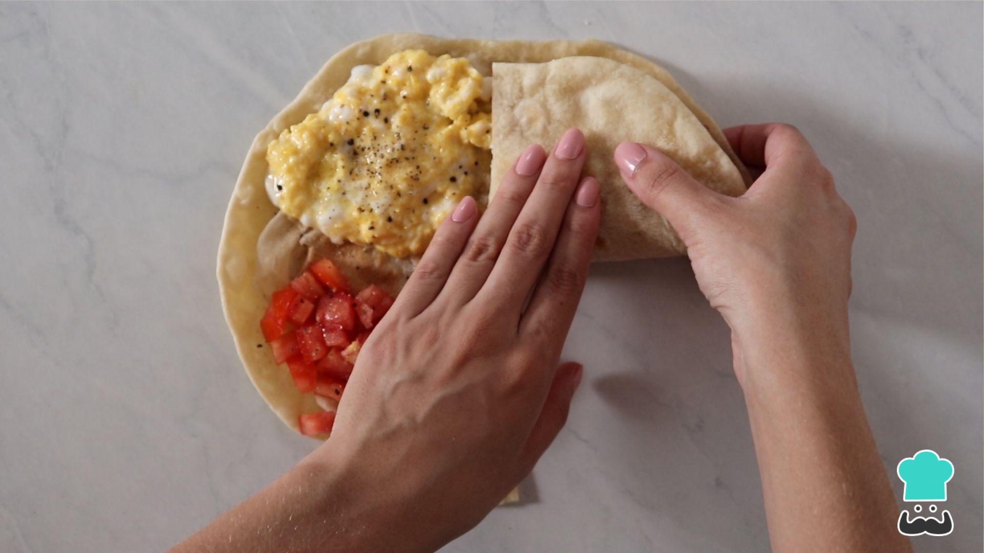 Em seguida dobre cada parte da tortilla como na imagem abaixo.