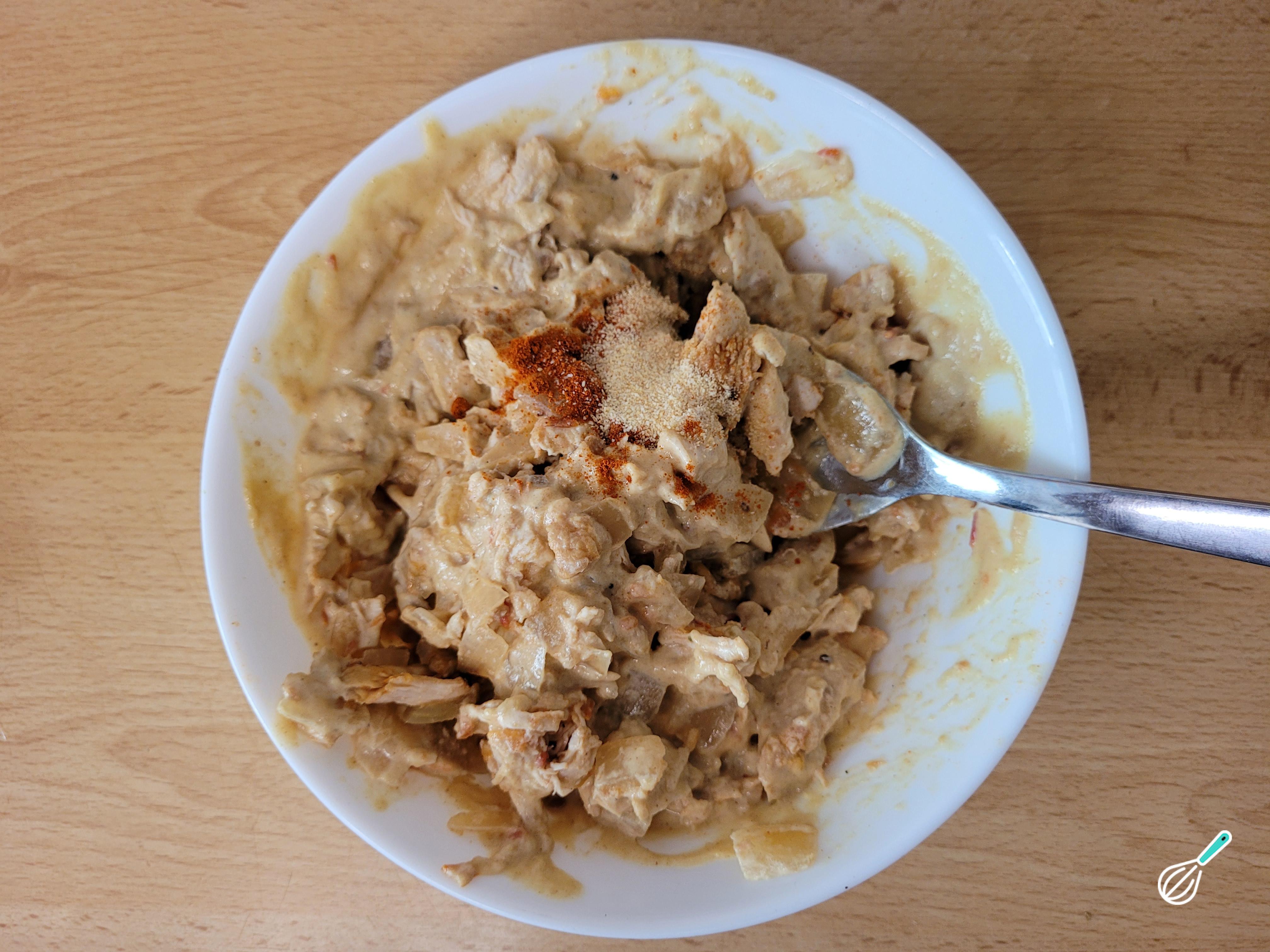 Dica: O frango estava temperado apenas com sal e pimenta do reino, então acrescentei também páprica e alho em pó, mas é opcional.
