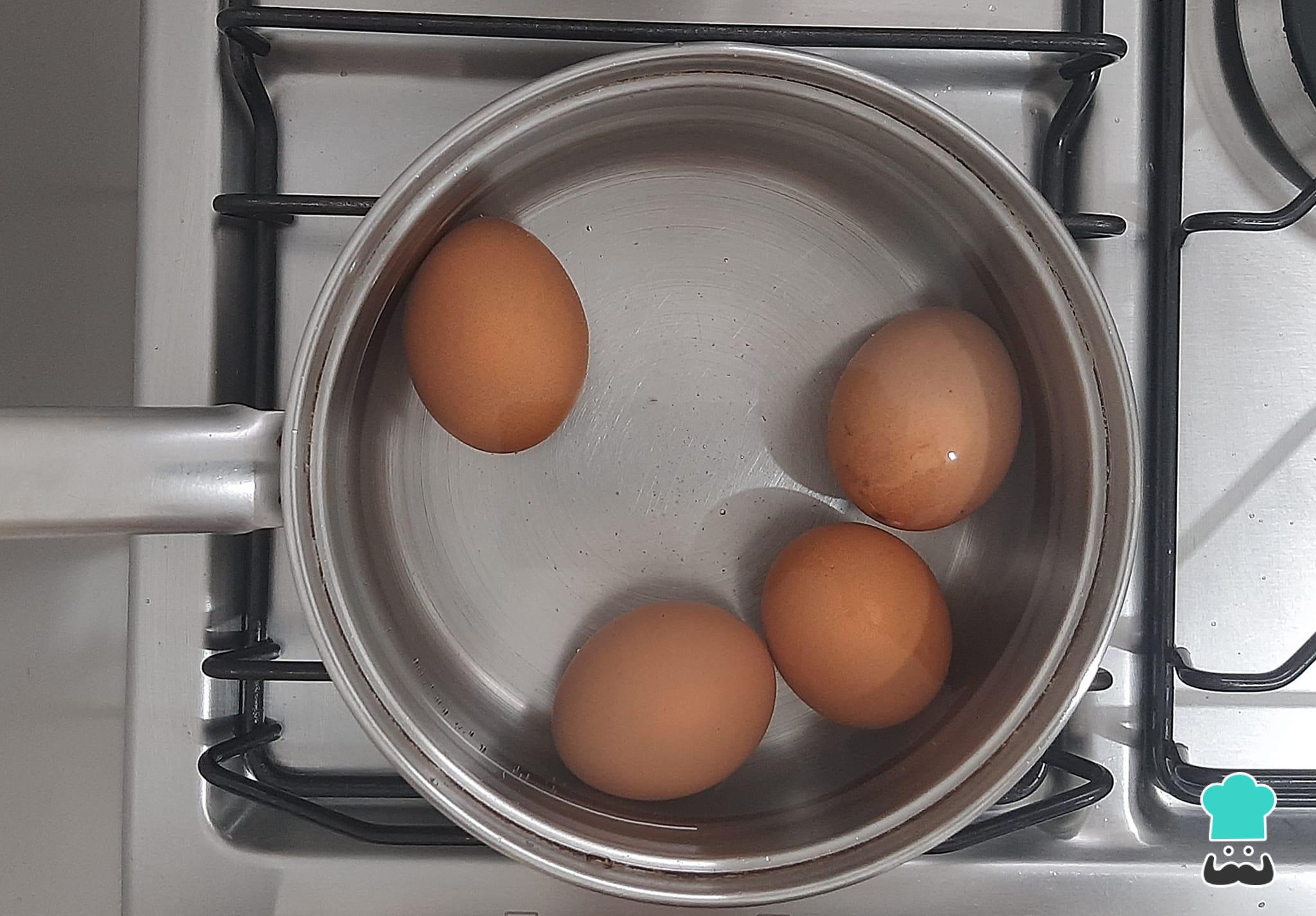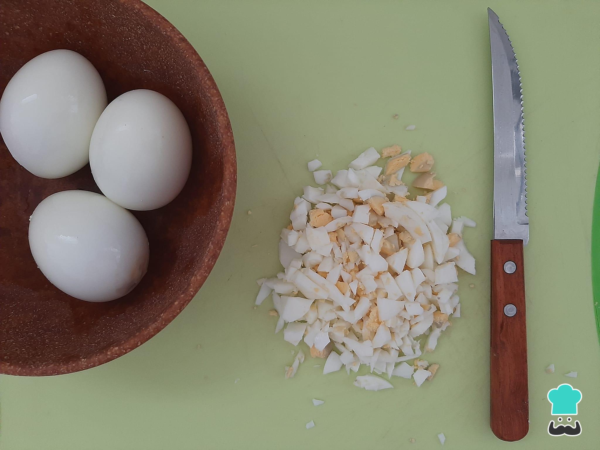 Com os ovos cozidos, descasque-os e pique-os com o auxílio de uma faca.