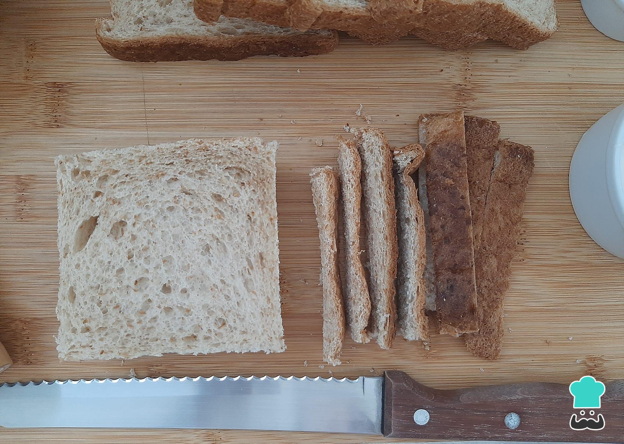 Dica: Aqui, eu usei as aparas dos pães para preparar torradinhas.