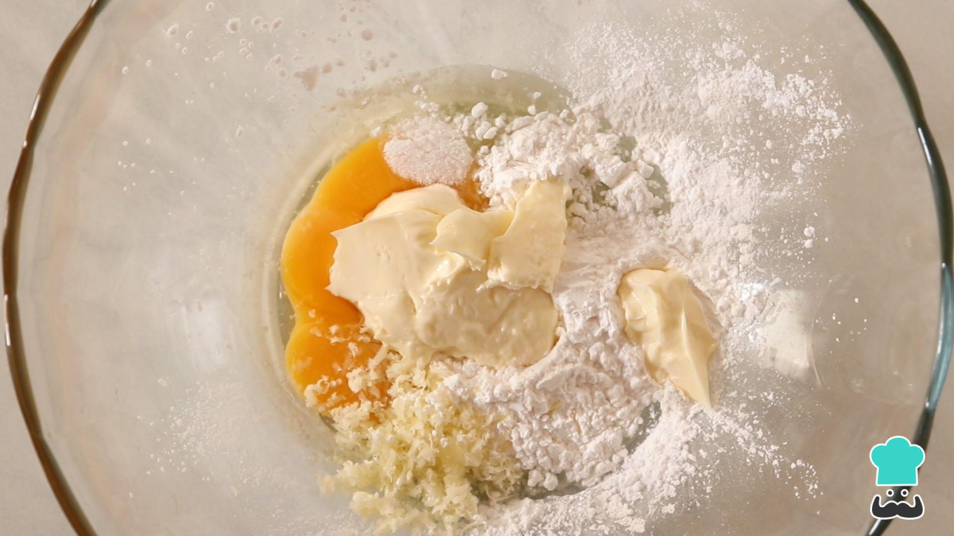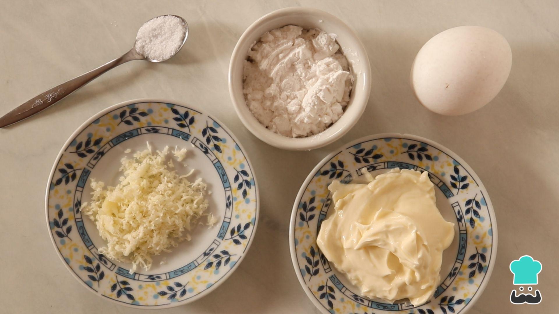 Em uma tigela misture o ovo, o polvilho, requeijão, queijo ralado e pitada de sal.