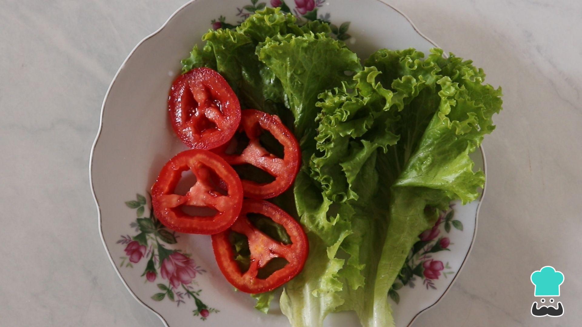 Agora é só montar seu sanduíche: corte o pão de queijo na metade, coloque a alface, o tomate e o frango cortado em pedaços.