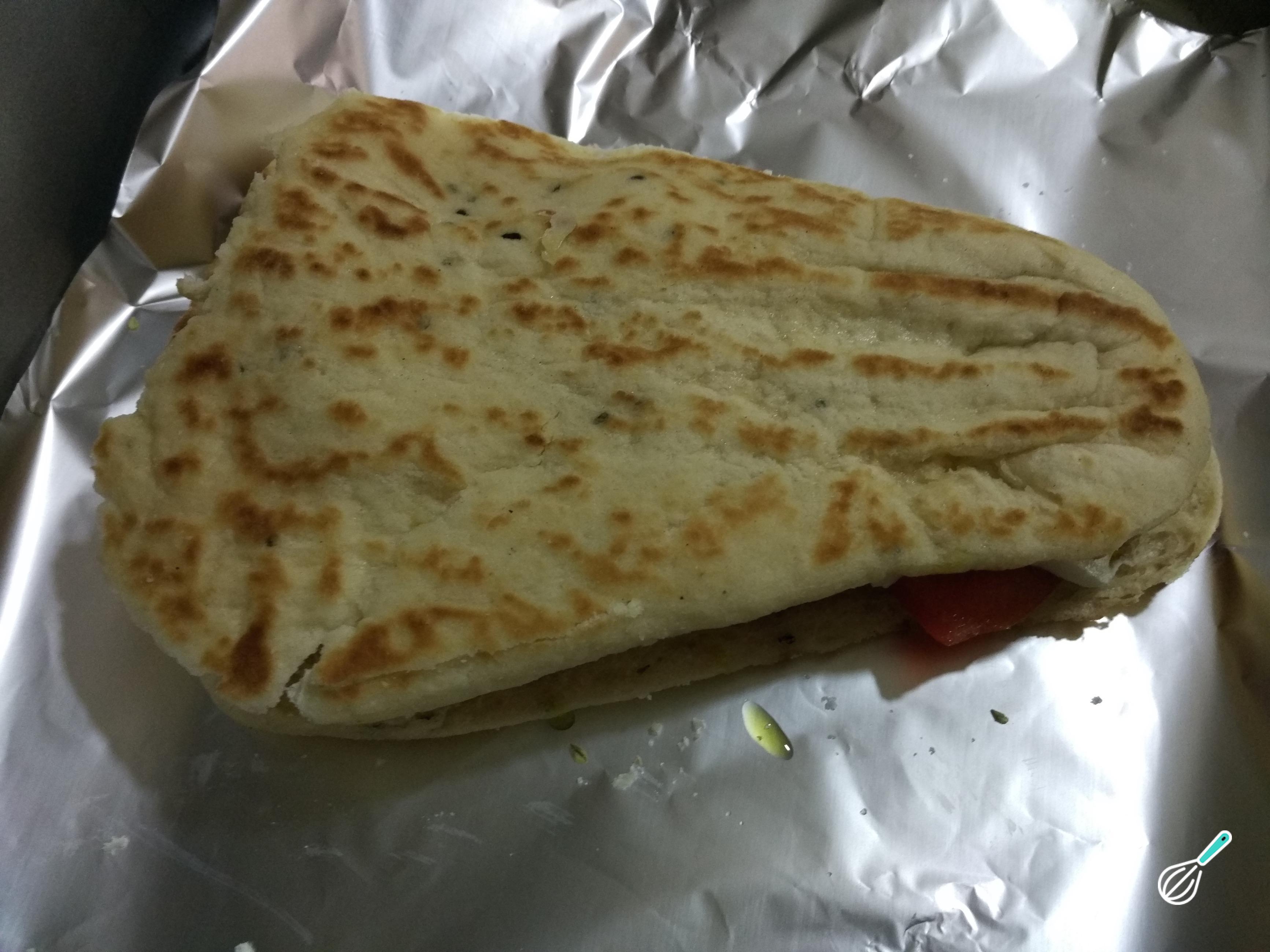 Após o passo anterior, seu sanduíche de pão sírio vegetariano está pronto! É ideal para uma refeição rápida, ou para um petisco de amigos.