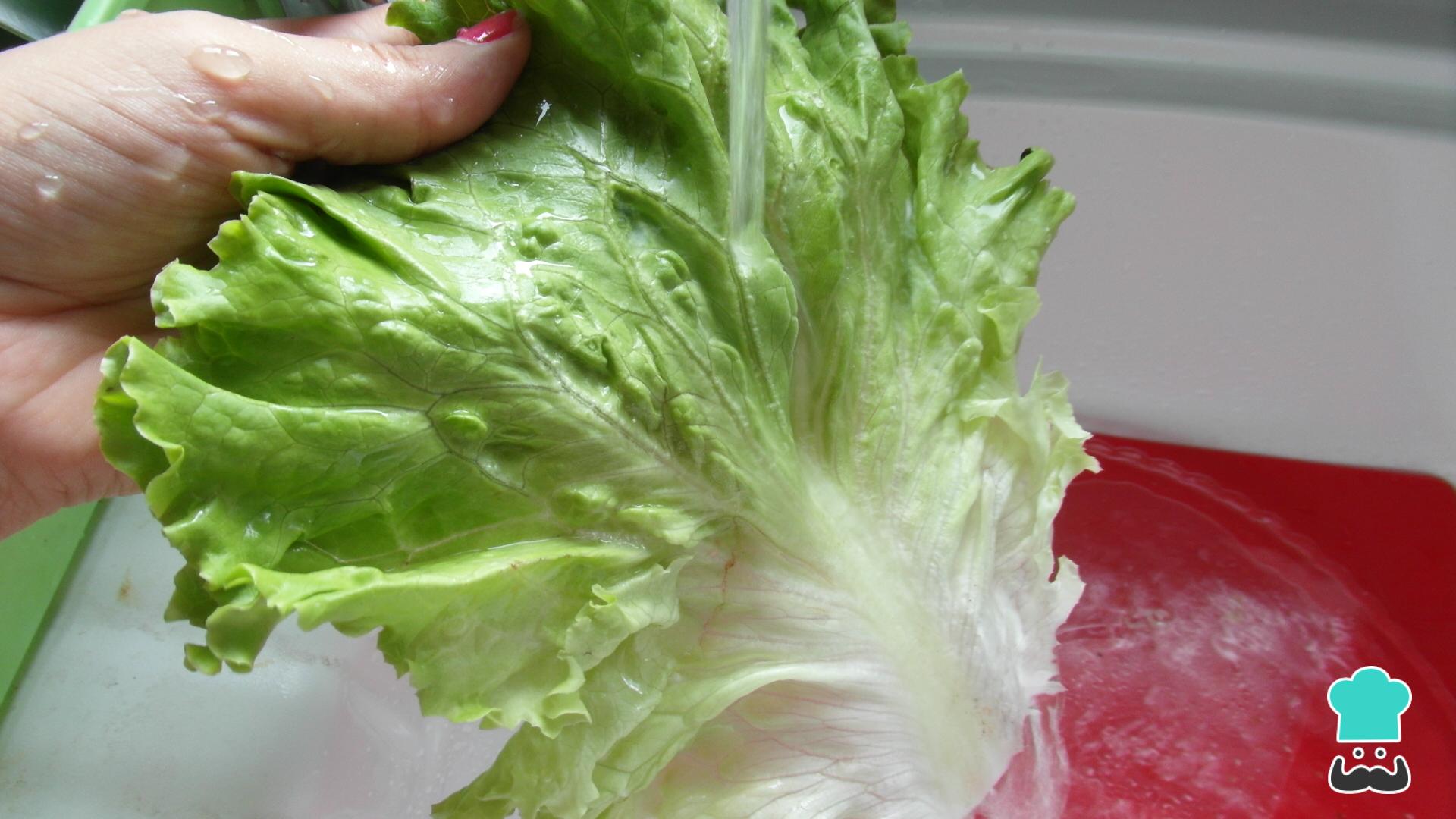 Lave bem a folha de alface, seque e desfaça com as mãos.