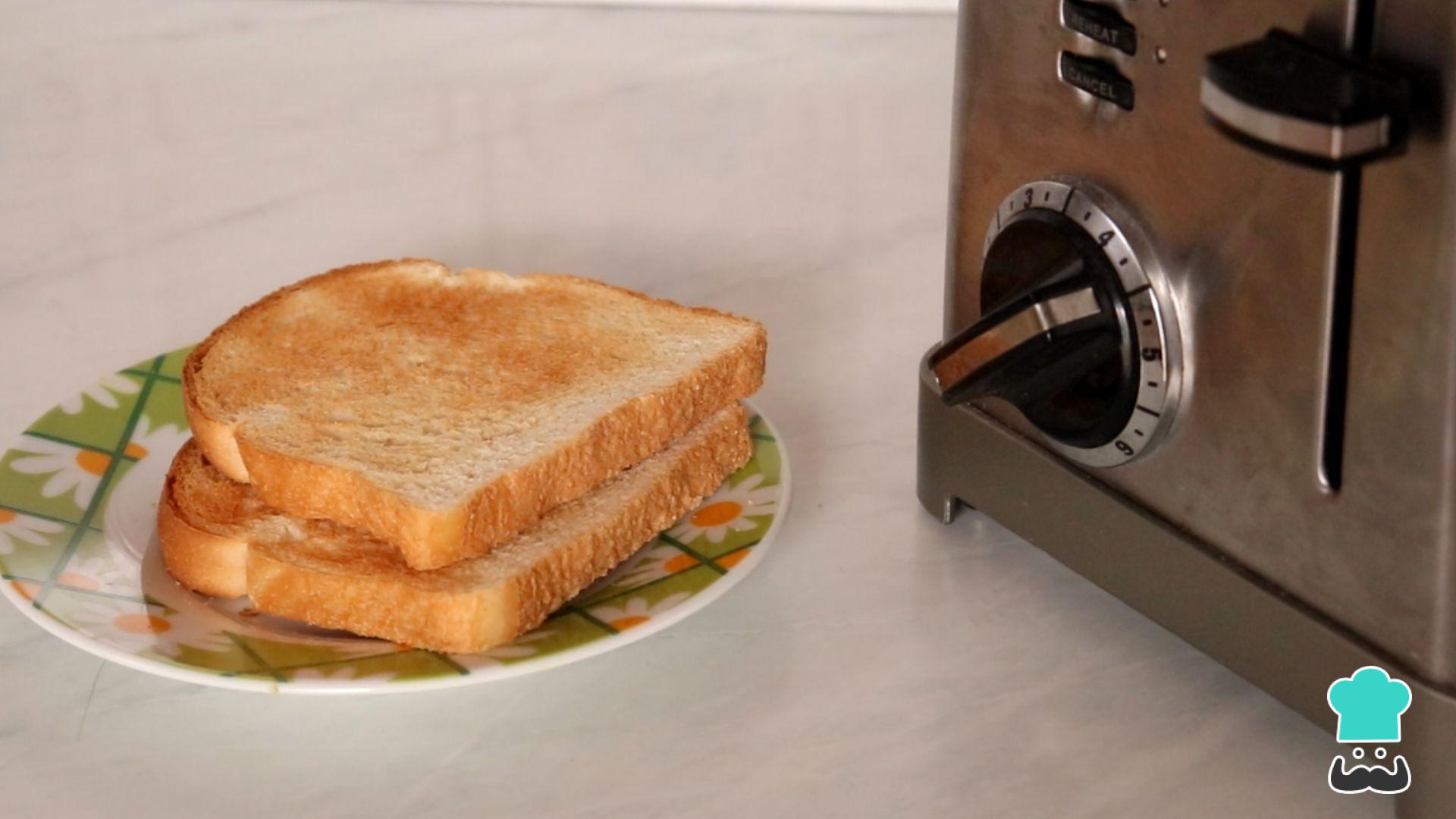 Nós tostamos os pães na torradeira para ficar bem crocante. Se você não tiver um aparelho como esse em casa, passe manteiga e torre os dois lados do pão em uma frigideira quente. Reserve.