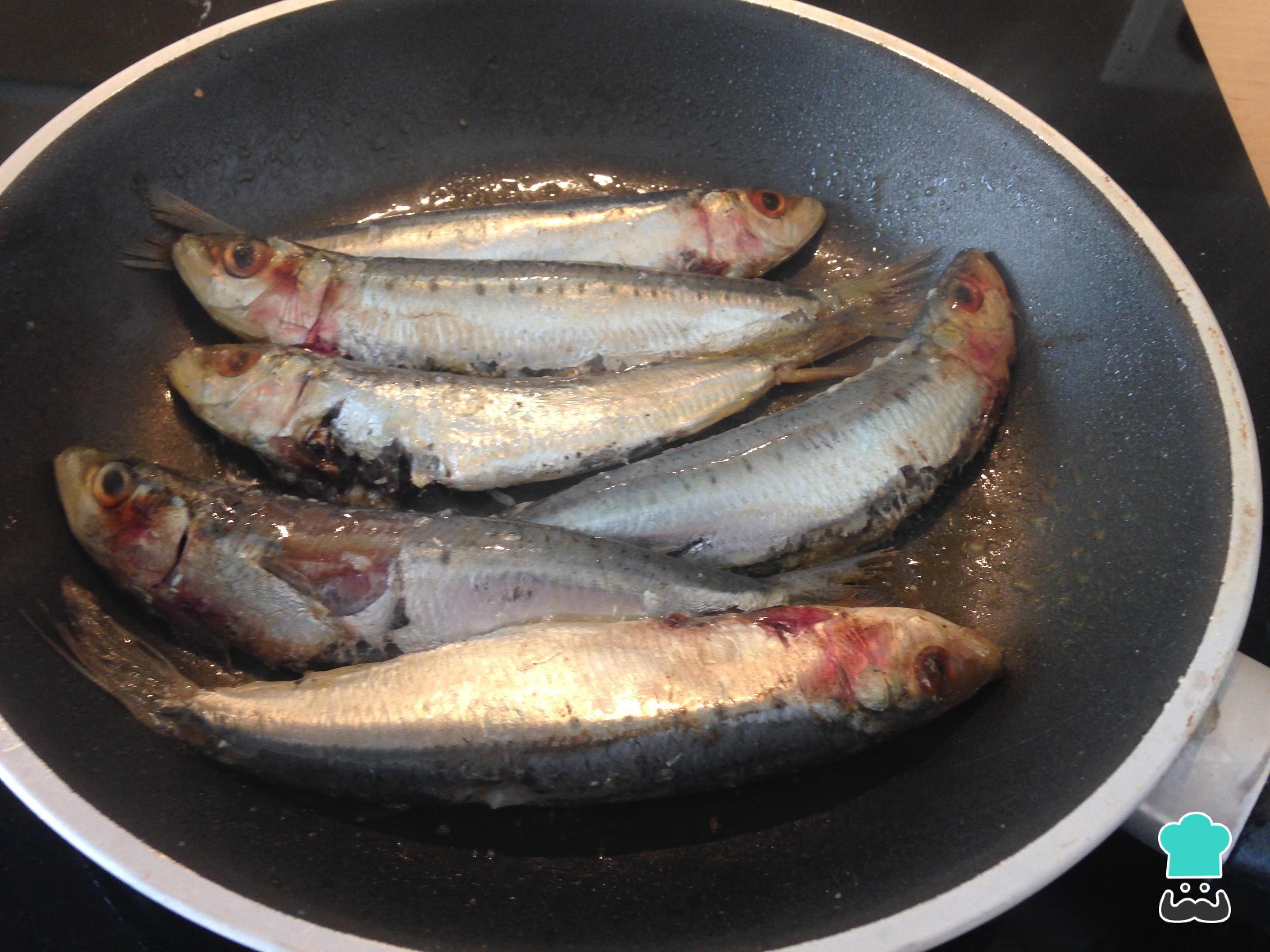Em uma chapa, frigideira ou grelha antiaderente em fogo alto, grelhe as sardinhas polvilhadas com um pouco de sal, até que fiquem douradas de ambos os lados.