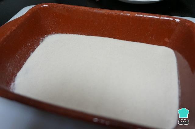 Depois de reservar as sardinhas coloque a farinha de trigo em uma assadeira ou prato largo e esquente o óleo numa frigideira.