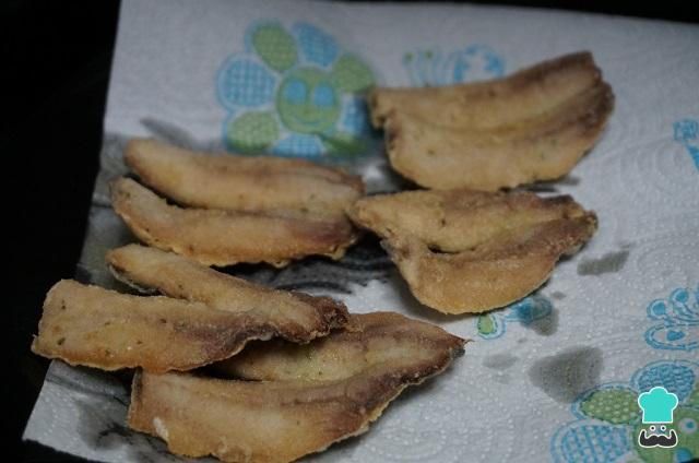 Coloque as sardinhas em um prato com papel absorvente para eliminar o excesso de óleo. Assim conseguirá sardinha frita sequinha e crocante.