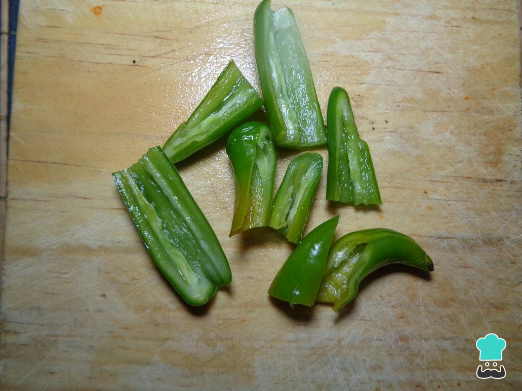 Limpe as pimentas jalapenhas, das sementes e corte-as em pedaços pequenos.