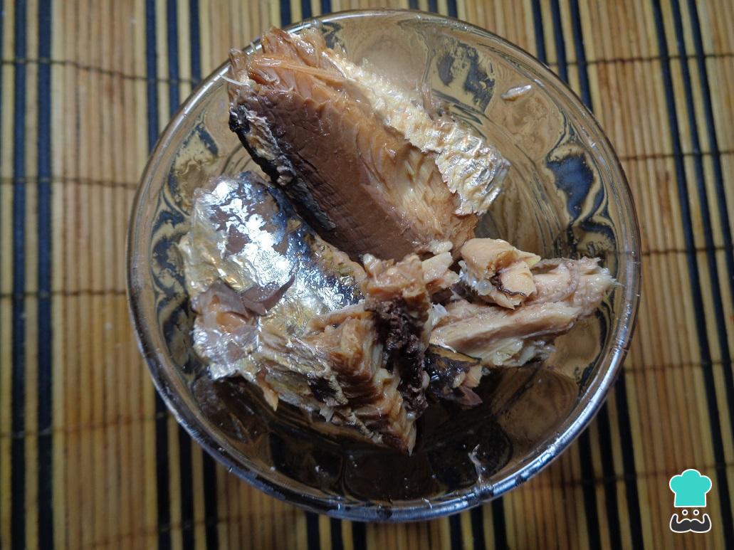 Enquanto o molho de tomate cozinha, comece a preparar as sardinhas em lata. Retire as sardinhas da lata e passe-as por água.