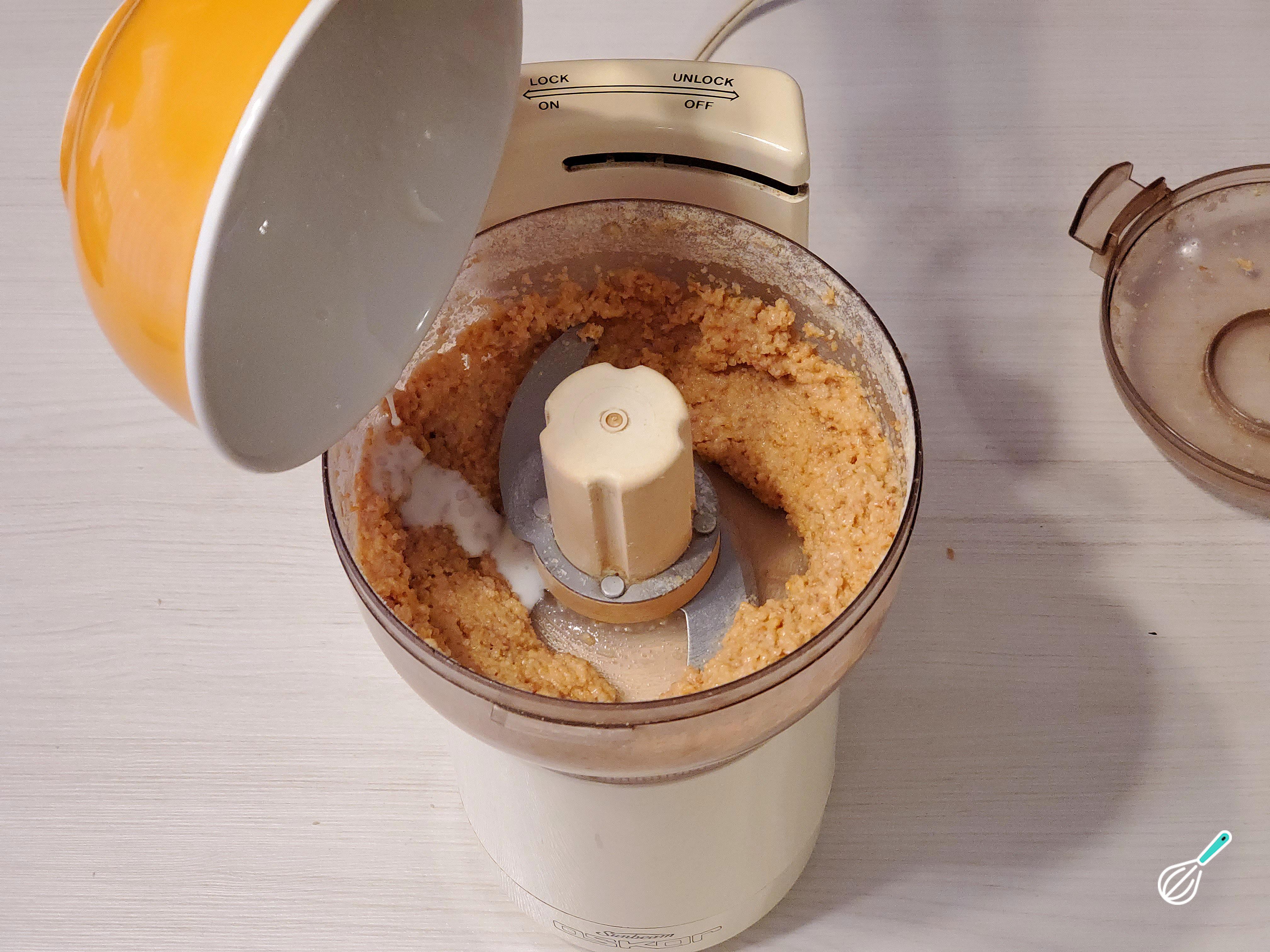 Adicione o leite ou creme de leite até formar uma pasta. Adicione também uma pitada de sal e, se desejar, algumas gotas de essência de baunilha.