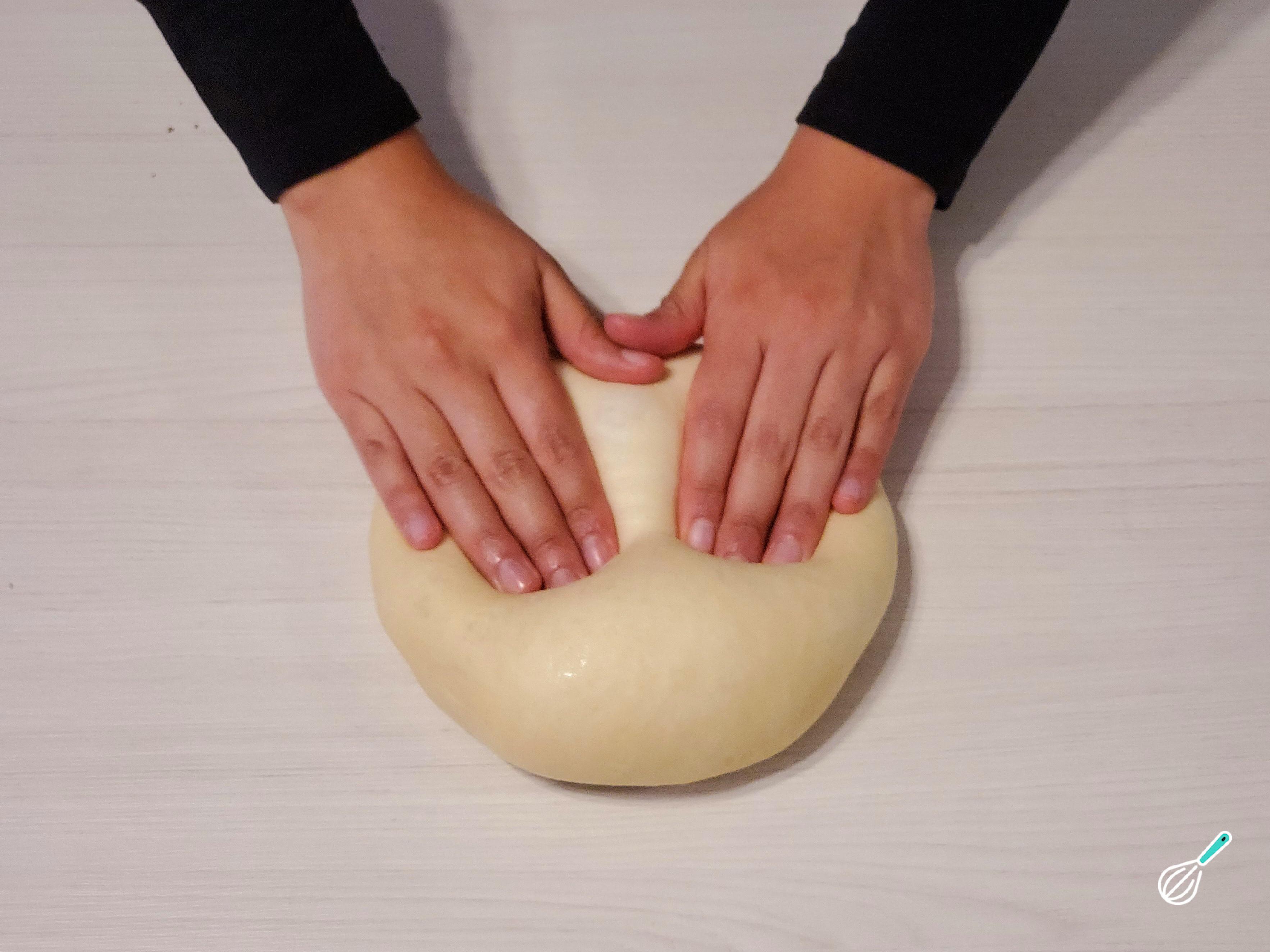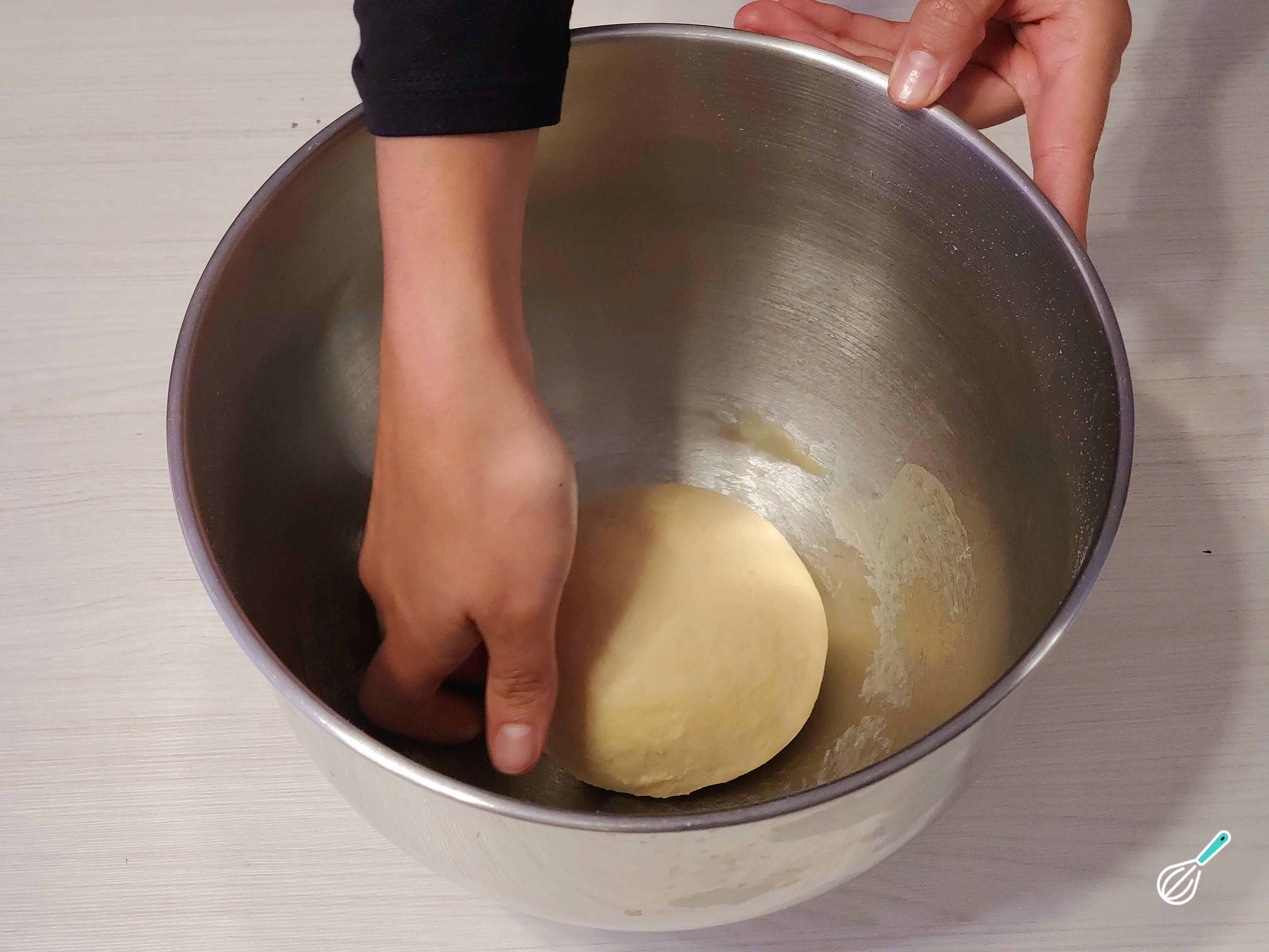 Cubra essas porções com pano úmido ou papel filme para evitar que ressequem e amasse-as uma a uma. Em seguida, aperte a junta feita na base para evitar que ela se abra durante o descanso.
