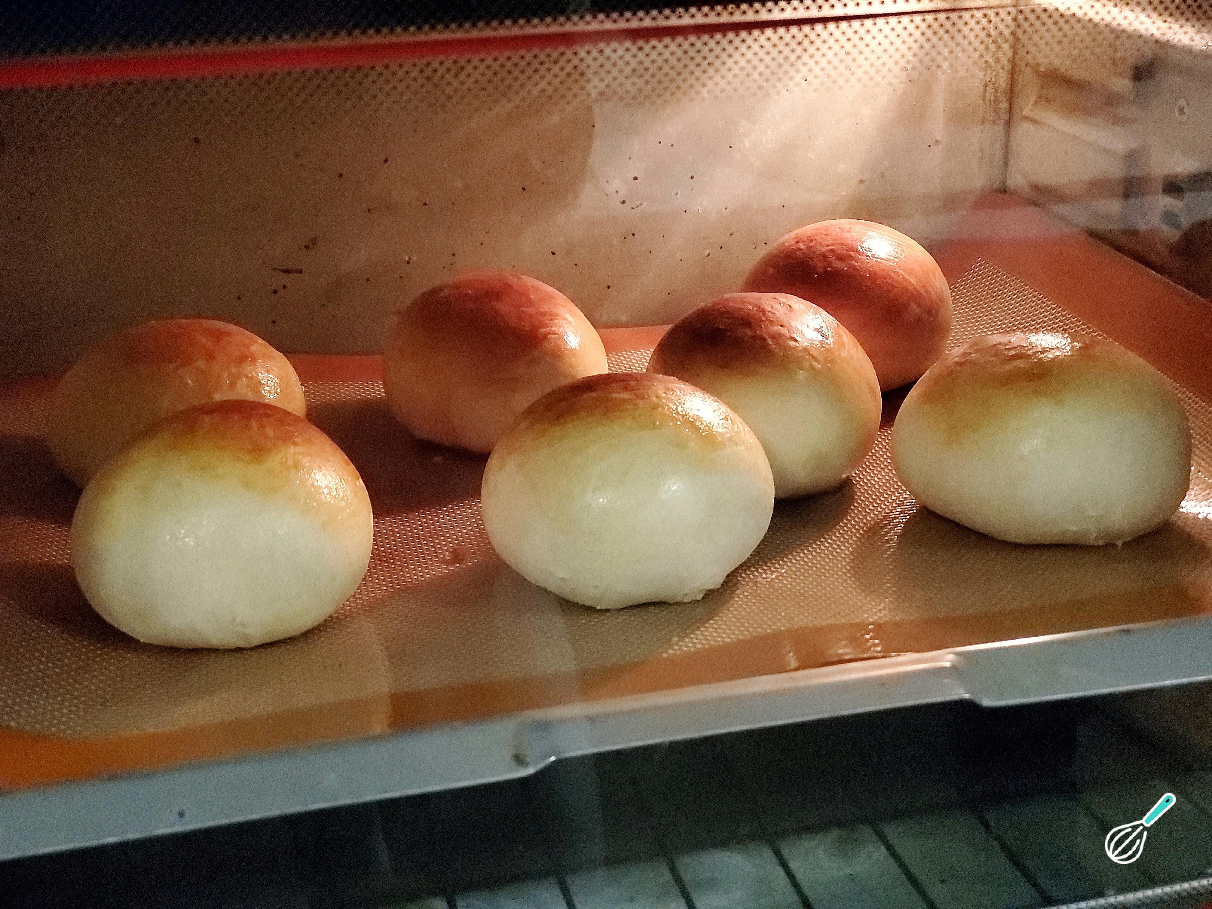 Disponha essas massas em um prato untado ou com tapete de silicone, deixe uma boa separação entre elas e cubra novamente para deixá-las em local aquecido para que cresçam até dobrarem de volume.