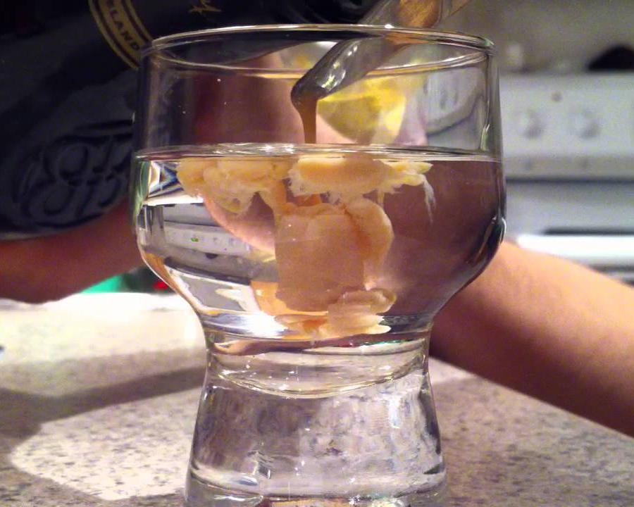 Divida essa mistura por 6-7 copos de shot, sem encher até ao topo. Adicione um pouquinho de Baileys em cada copo, bem lentamente, e logo verá que essa bebida forma uma espécie de cérebro, por conta de não se misturar na vodka.