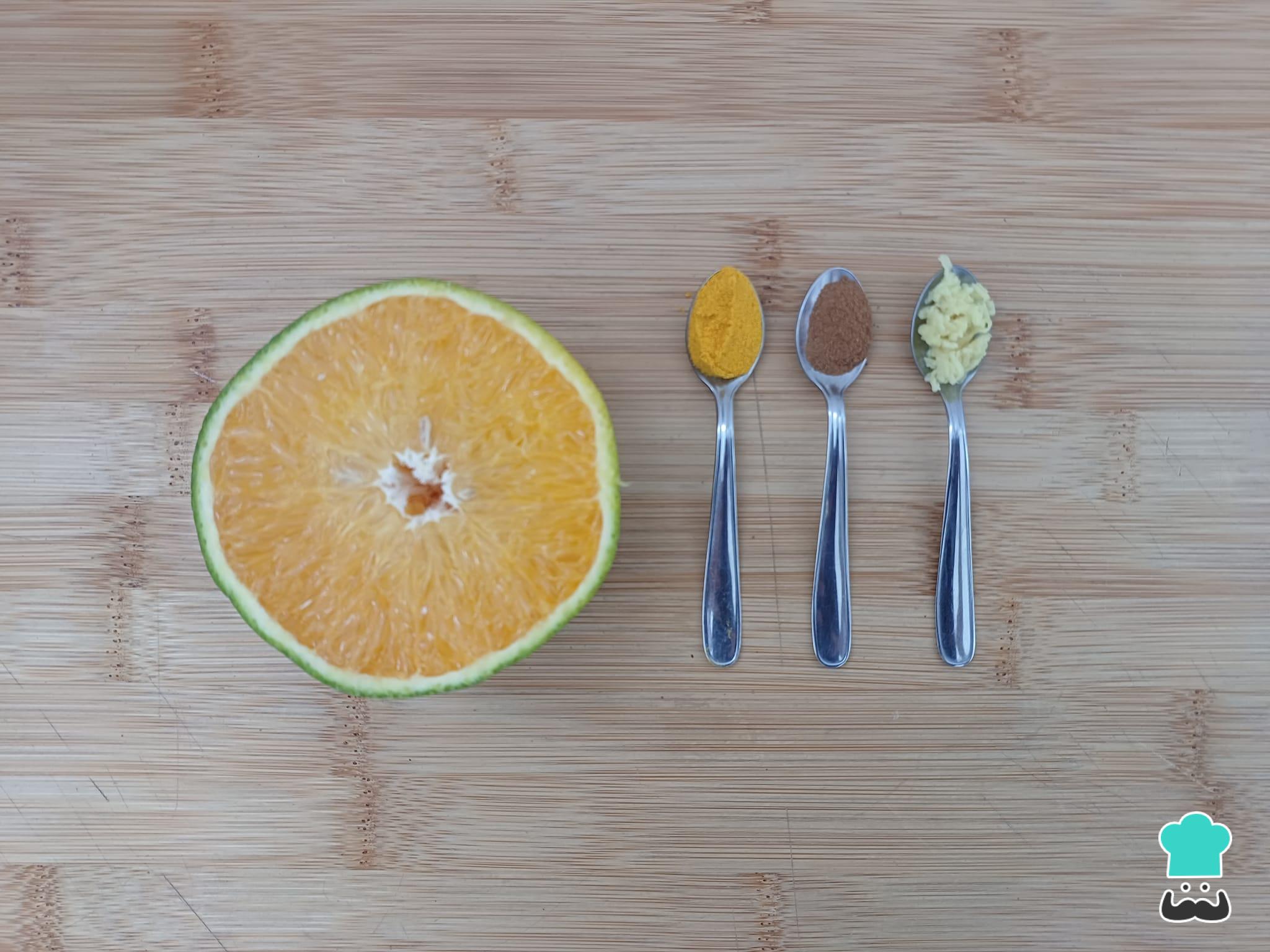 Separe os ingredientes necessários para o preparo do shot para imunidade.