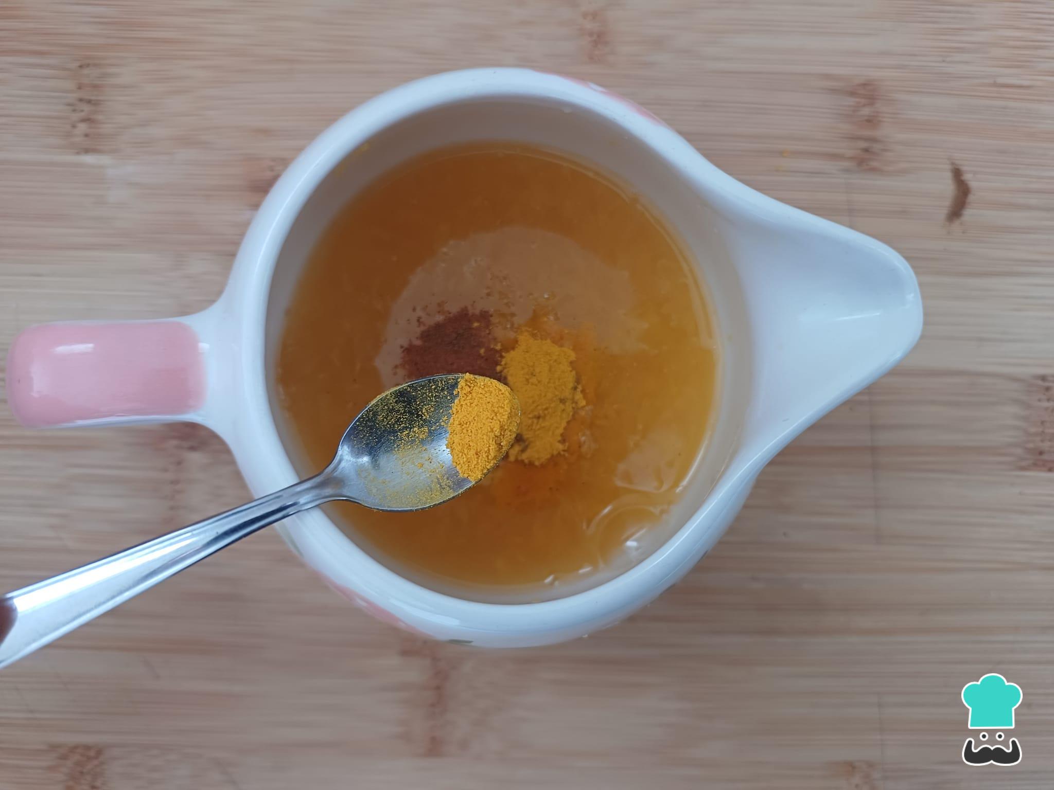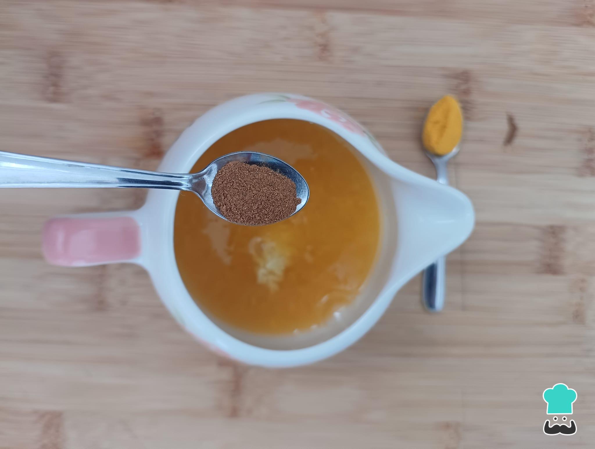 Por último, adicione o açafrão em pó.