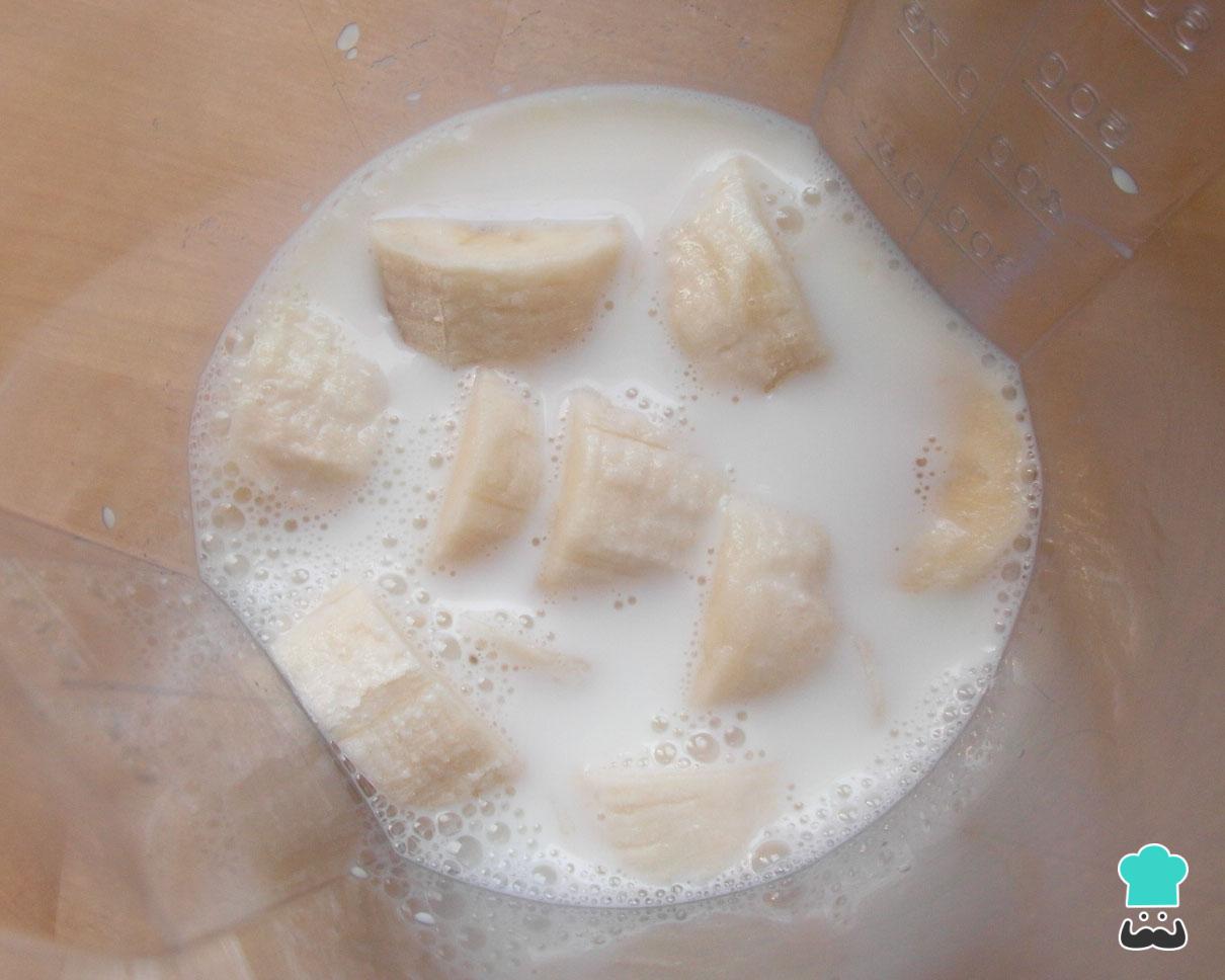 Depois de cortar a fruta coloque-a na liquidificadora e acrescente o leite que quiser, dependendo se você gosta do batido mais liquido ou mais espesso. Bata a fruta com o leite.