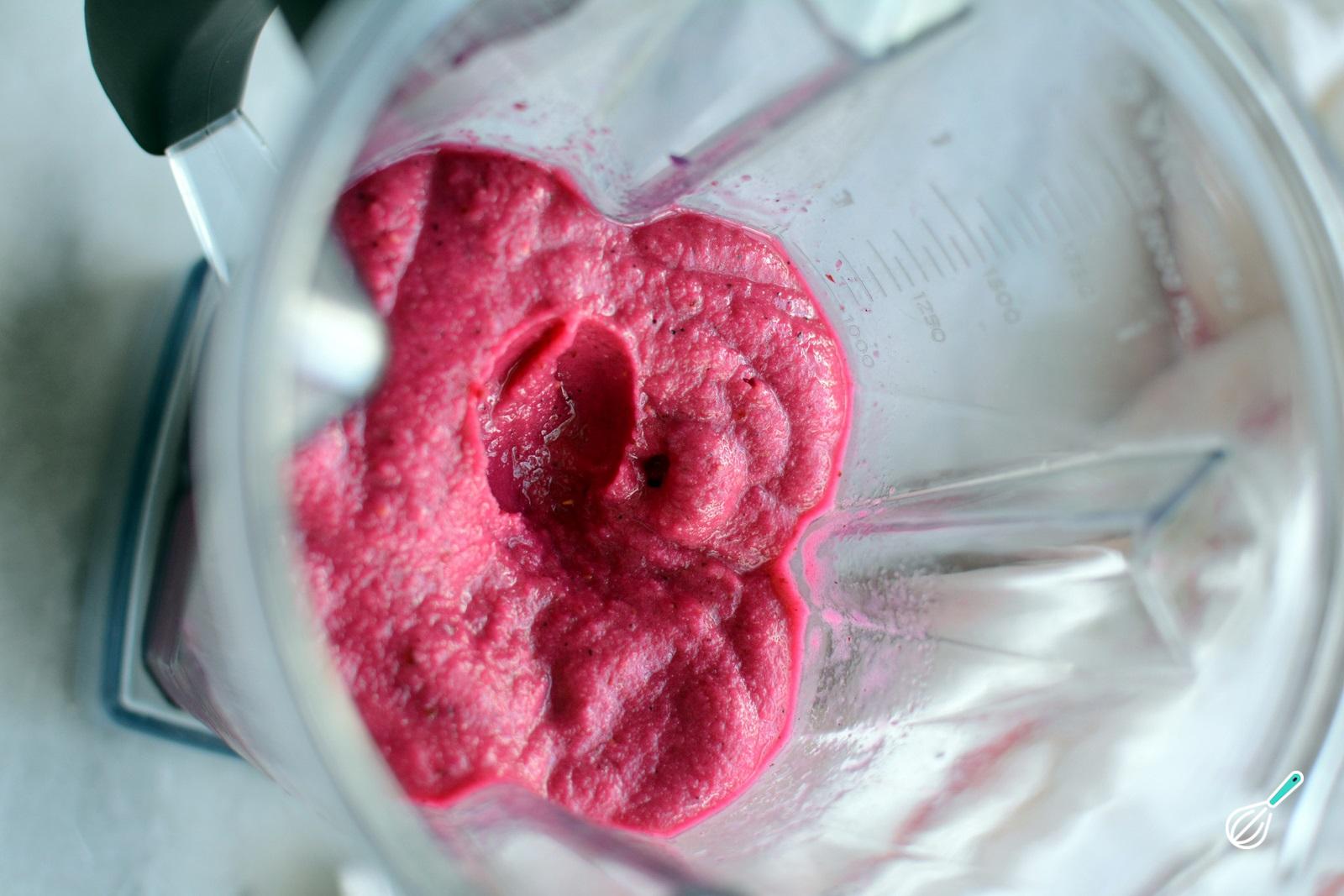 Depois de ter tudo pronto, coloque todos os ingredientes no liquidificador e bata até obter um smoothie de pitaya liso e homogêneo.