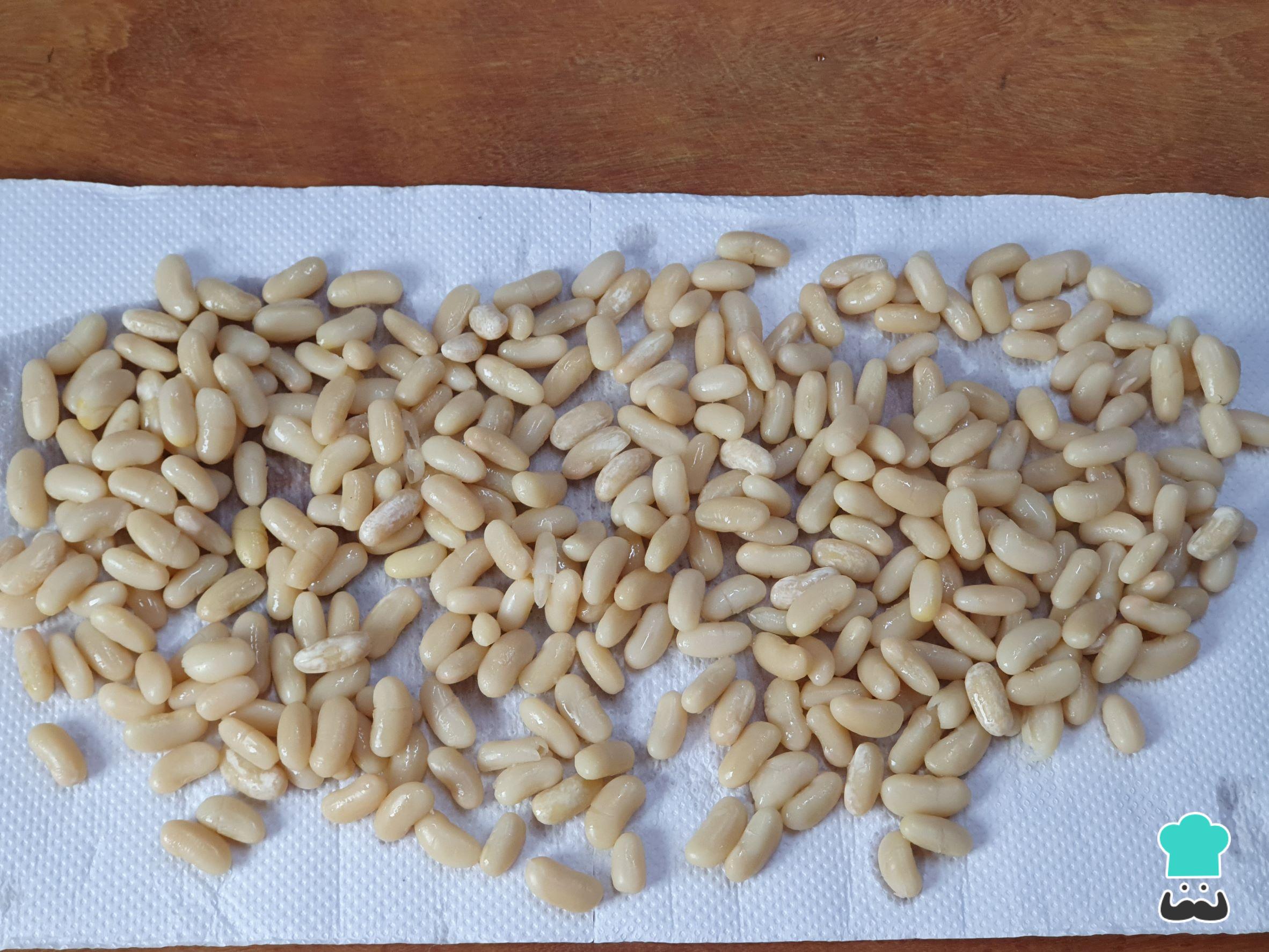 Aqueça o forno a 180 graus e comece secando muito bem o feijão cozido com um papel toalha.