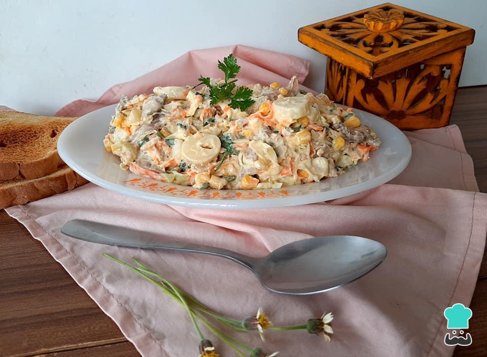 Misture muito bem todos os ingredientes da tigela e, em seguida, junte a maionese preparada anteriormente.