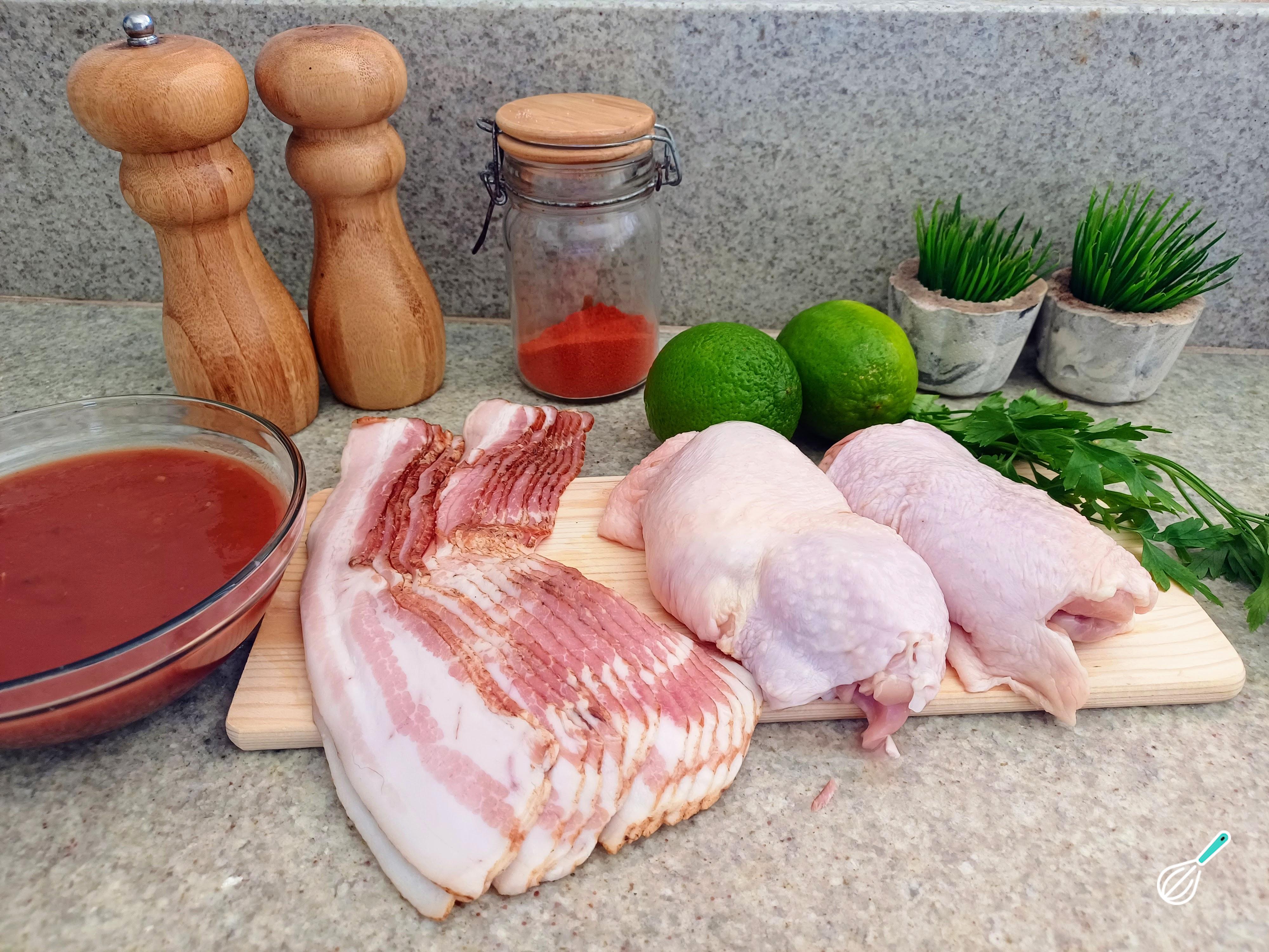 Esta é a nossa deliciosa receita de sobrecoxa recheada com bacon, opção irresistivel para o almoço, que combina a suculência do frango marinado com o sabor defumado do bacon.