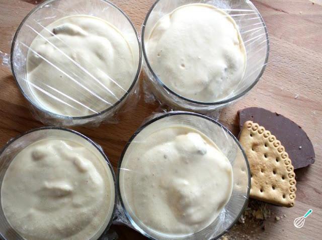 Tampe cada copinho com papel filme transparente e reserve a sobremesa na geladeira por 2-4 horas ou, de preferência, de um dia para ou outro.