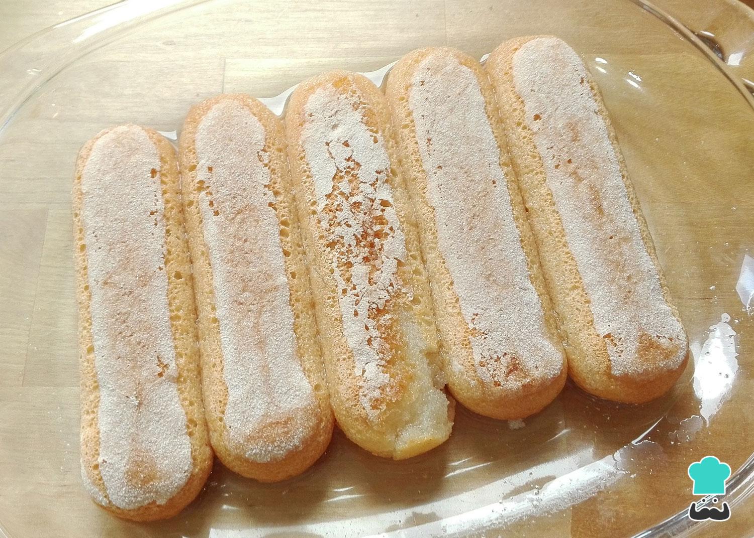 Prepare a montagem da sobremesa: coloque a calda do abacaxi num prato ou travessa e pique o abacaxi em cubinhos. Umedeça alguns biscoitos na calda e coloque no fundo da assadeira.
