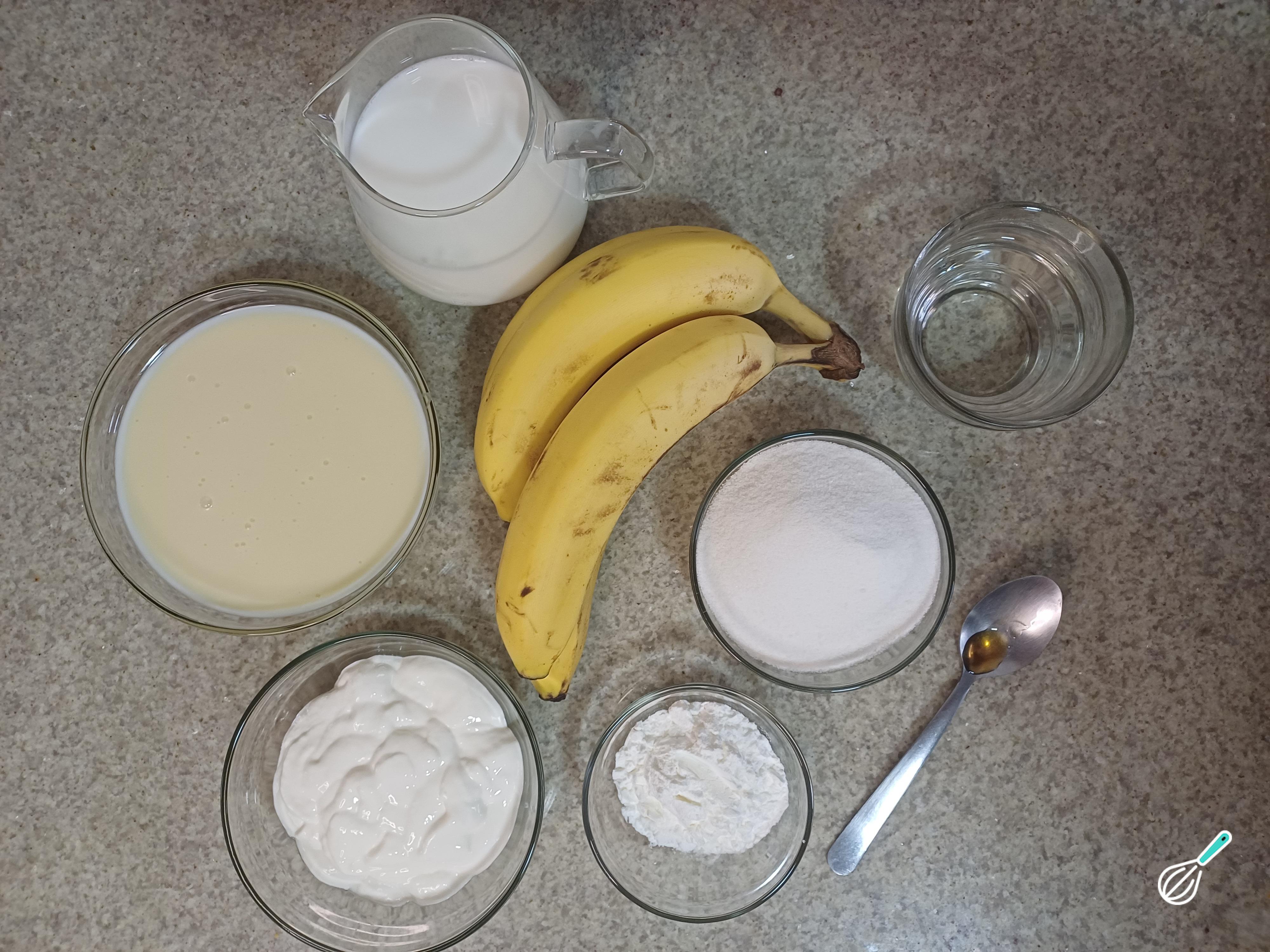 Separe os ingredientes necessários para fazer a sobremesa gelada de banana simples.