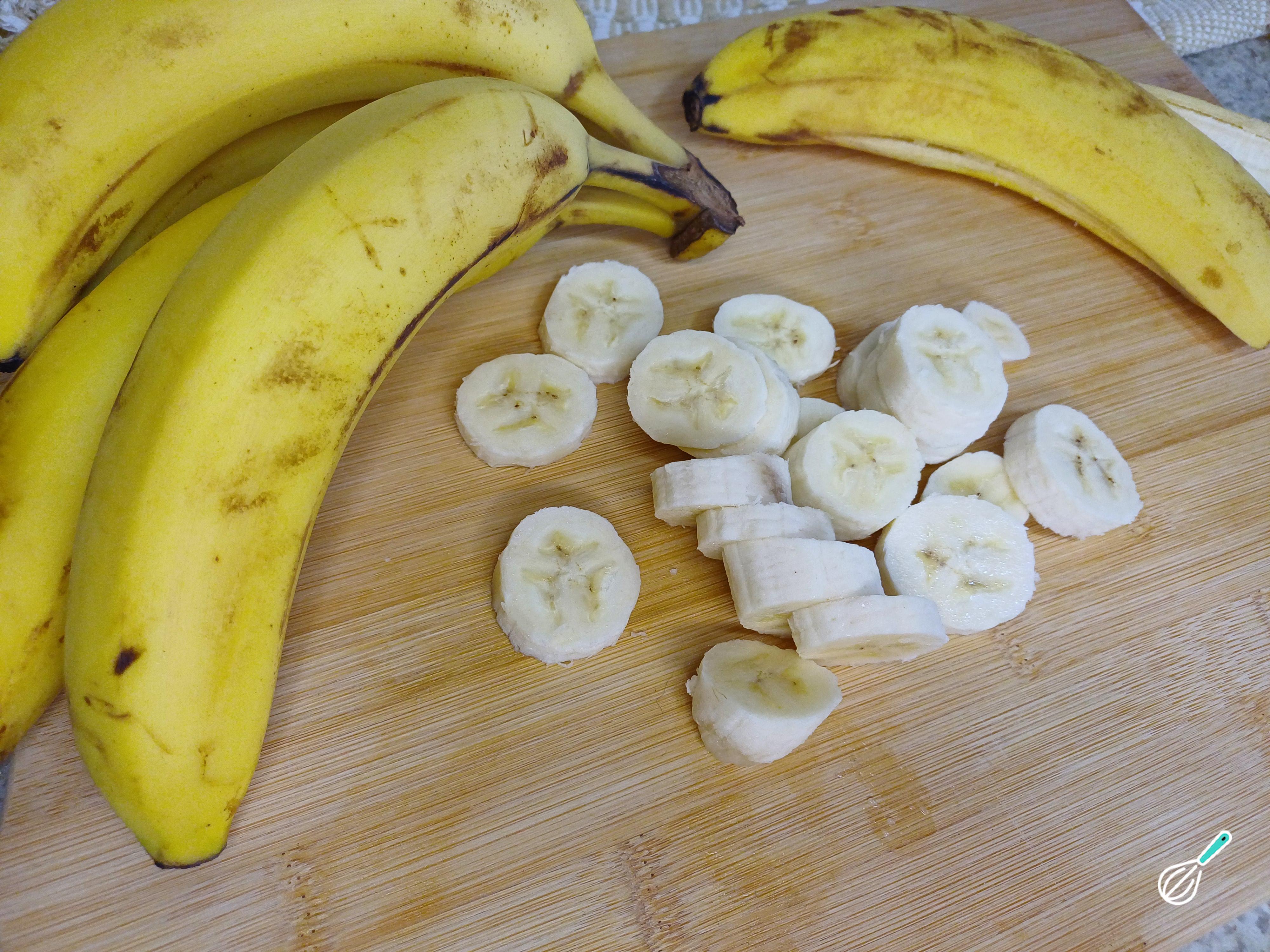 Dica: Misture o suco de 1 limão para não escurecer as bananas antes do preparo.