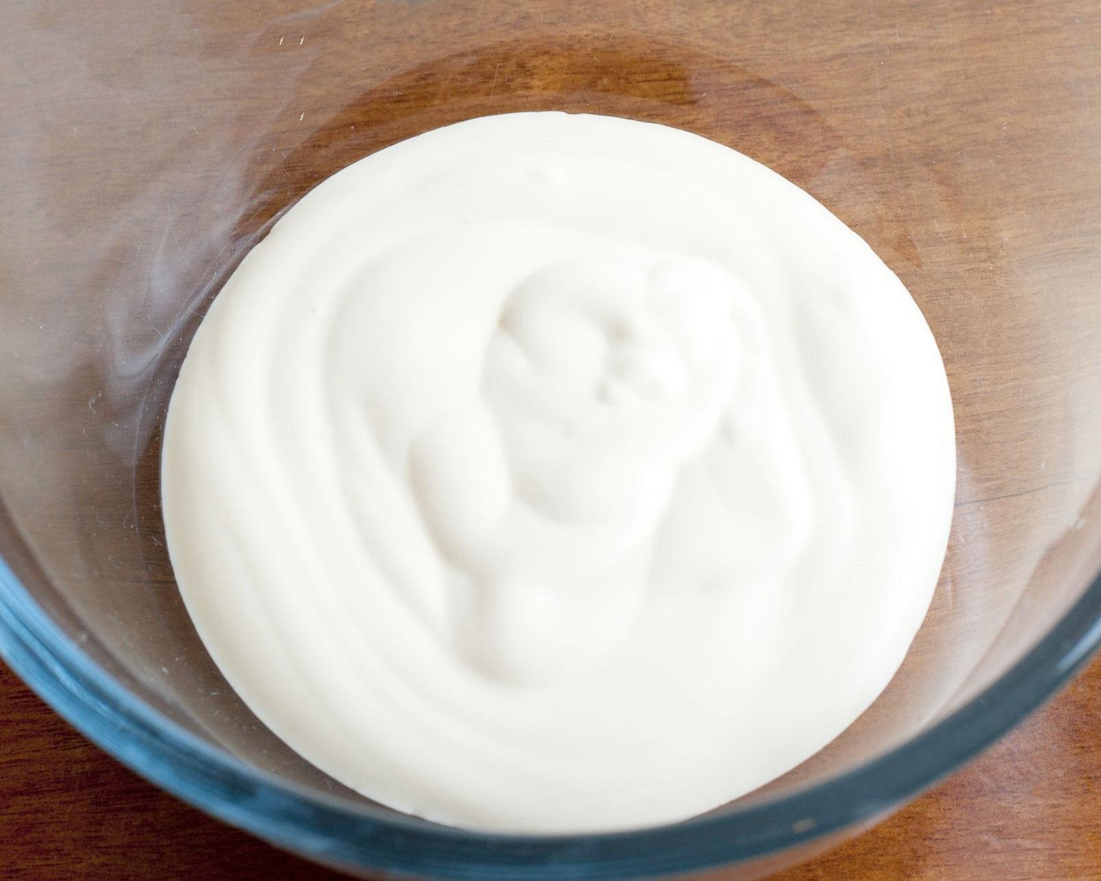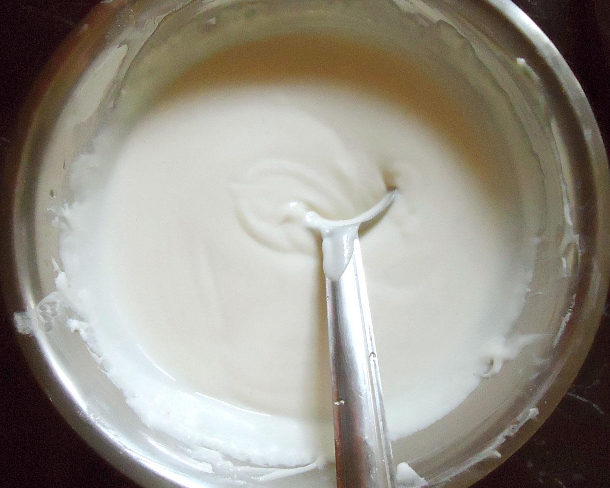 Quando você tiver um creme grosso, desligue e adicione a essência de baunilha. Reserve mais ou menos 2/3 deste creme branco num recipiente à parte.
