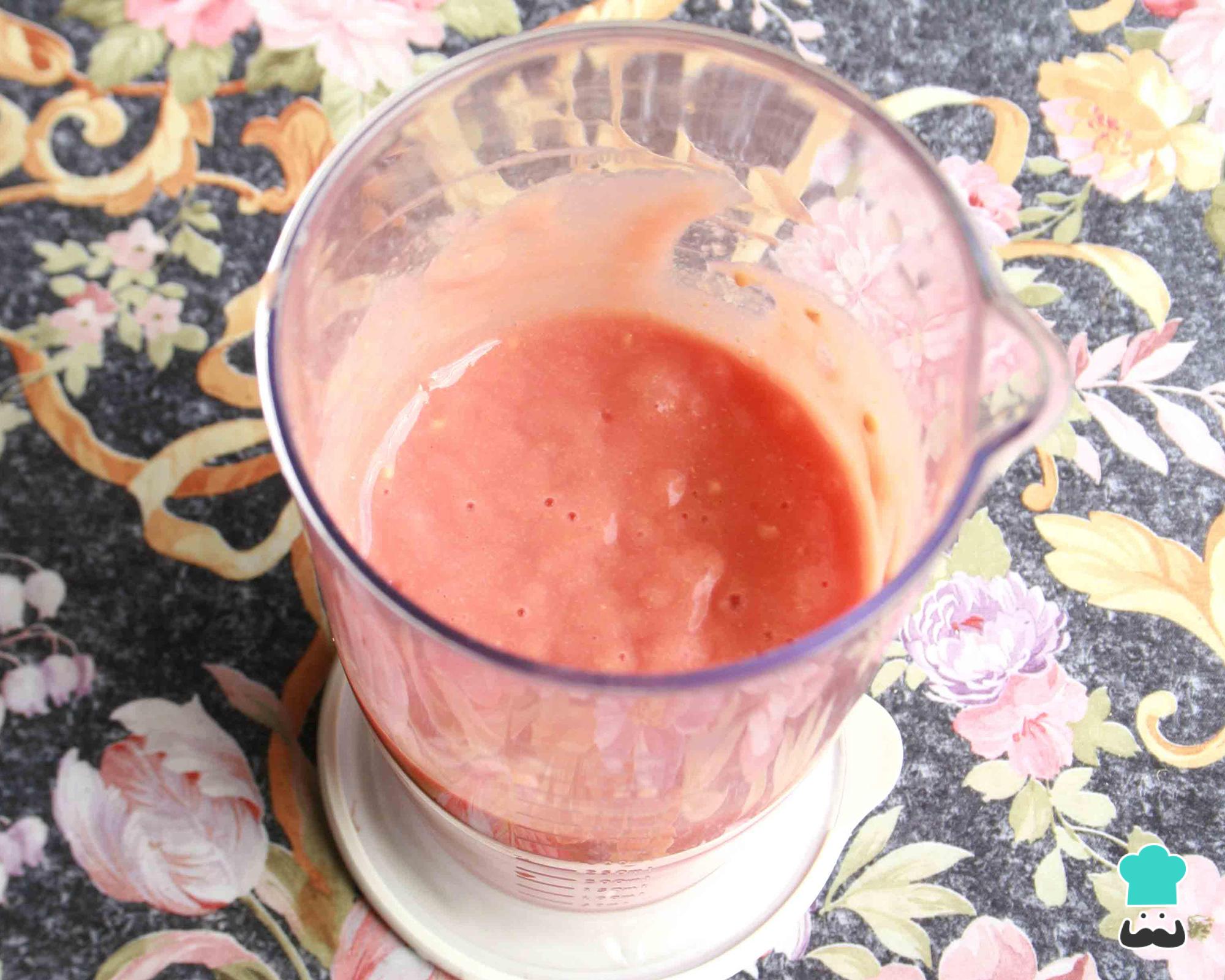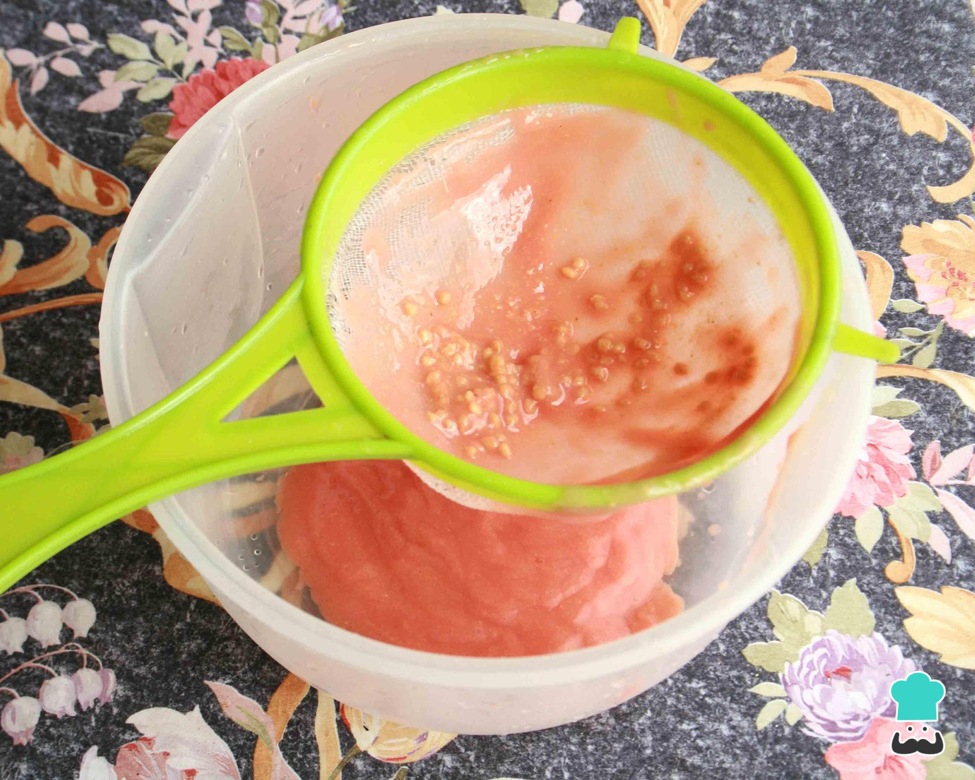 Passe a polpa por um coador para filtrar as sementes e pedaços.