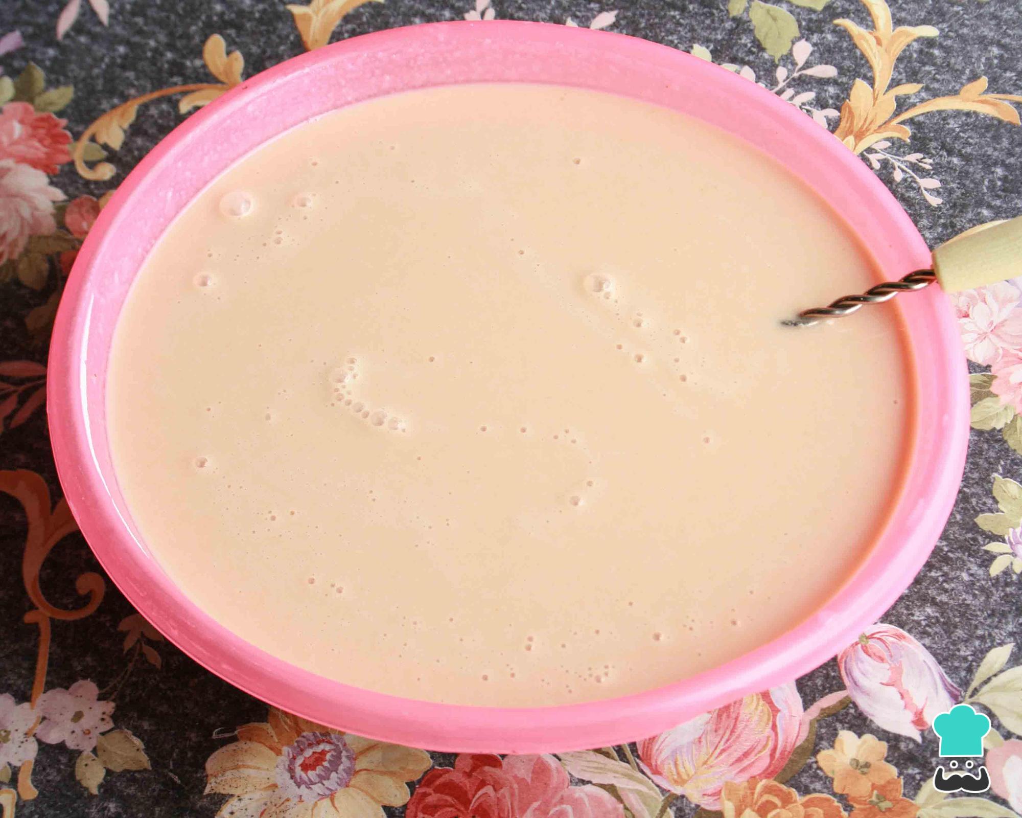 Descasque as goiabas e bata a polpa no liquidificador até obter 2 xícaras de polpa. Se você não quiser usar a fruta goiaba pode medir 2 xícaras de suco concentrado.