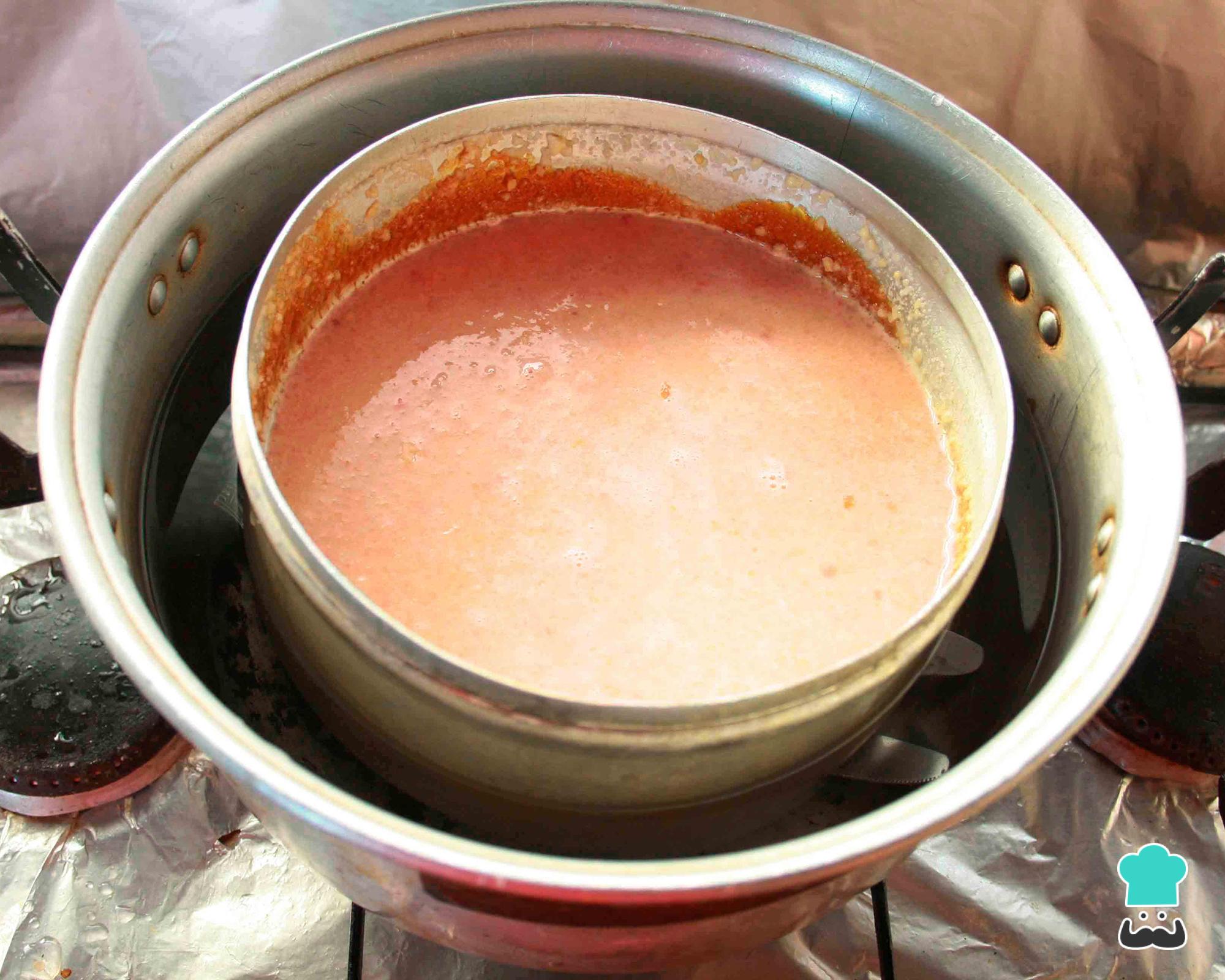 Depois de cozinhar, desligue o fogo e espere a sobremesa esfriar completamente. Reserve na geladeira até ao dia seguinte ou, no mínimo, por 8 horas, e desenforme com cuidado.