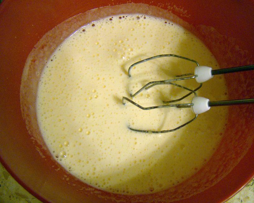 Derreta a manteiga e misture com o leite em um novo recipiente. Logo, junte todos os ingredientes (mistura de gemas e açúcar, mistura de manteiga e leite o leite condensado e a canela) e bata na batedeira ou no liquidificador por uns 5 minutos.