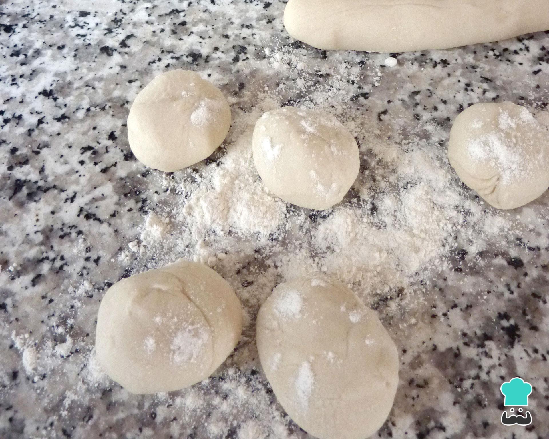 Após esse tempo divida a massa em bolinhas um pouco maiores que a palma da mão. Disponha em assadeiras untadas e enfarinhadas, deixando espaço entre cada uma. Cubra com um pano e reserve novamente, para crescer até dobrar o volume.