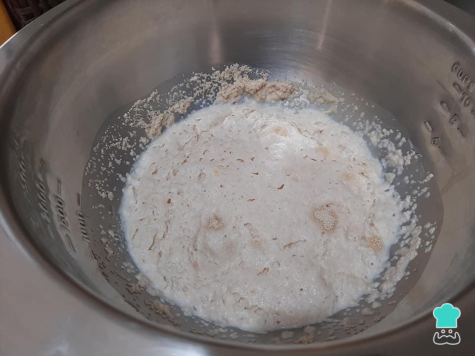 Deixe descansar coberto com um pano, em local fechado por 10 minutos até ativar o fermento.