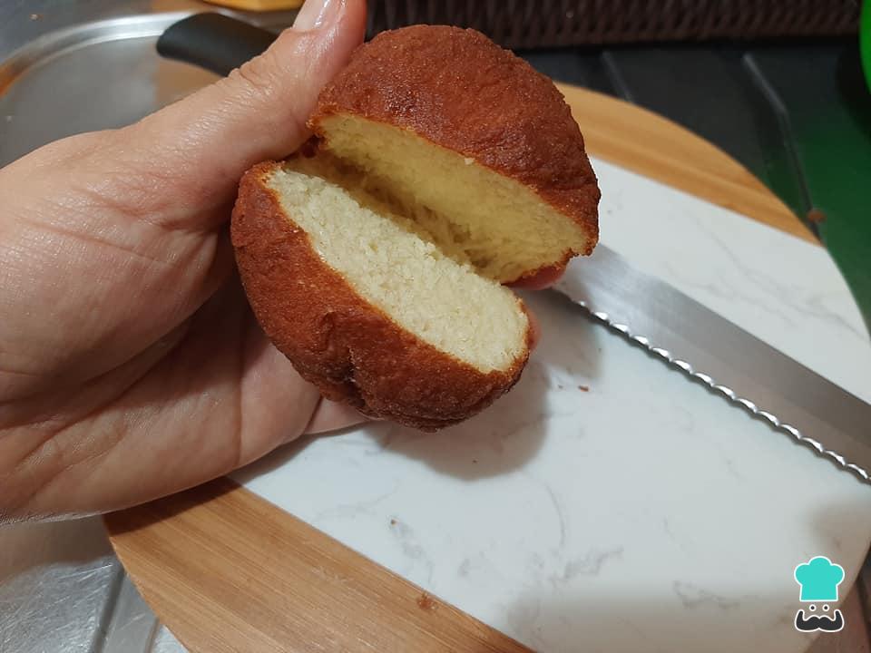 Frite as bolinhas por aproximadamente 6 minutos, virando os lados para que fritem uniformemente.