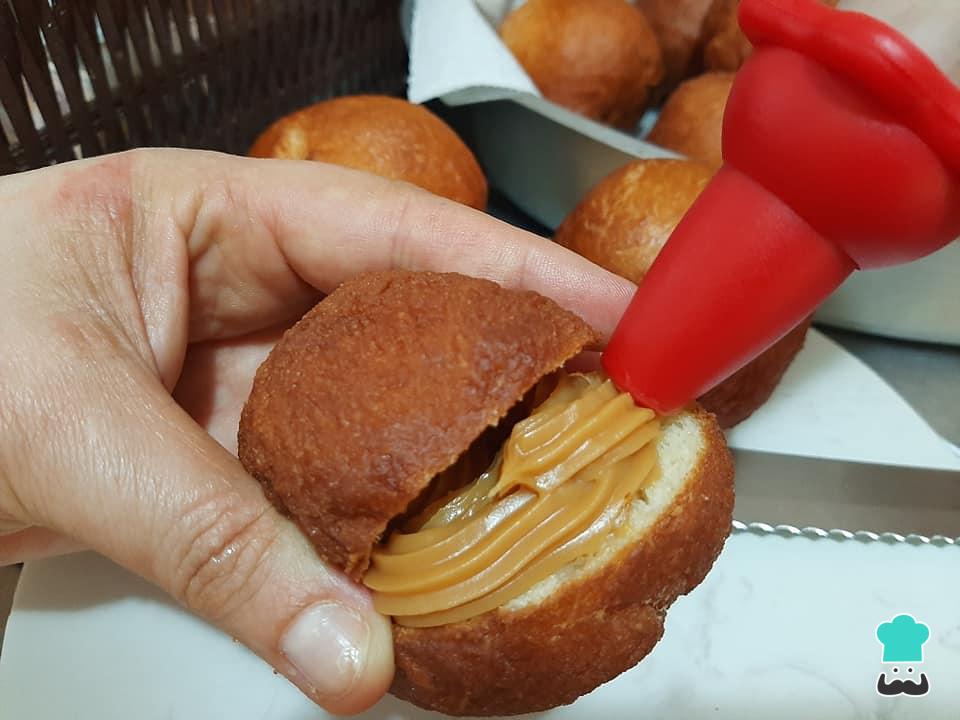 Se tiver manga de confeiteiro, recheie os sonhos com doce de leite.