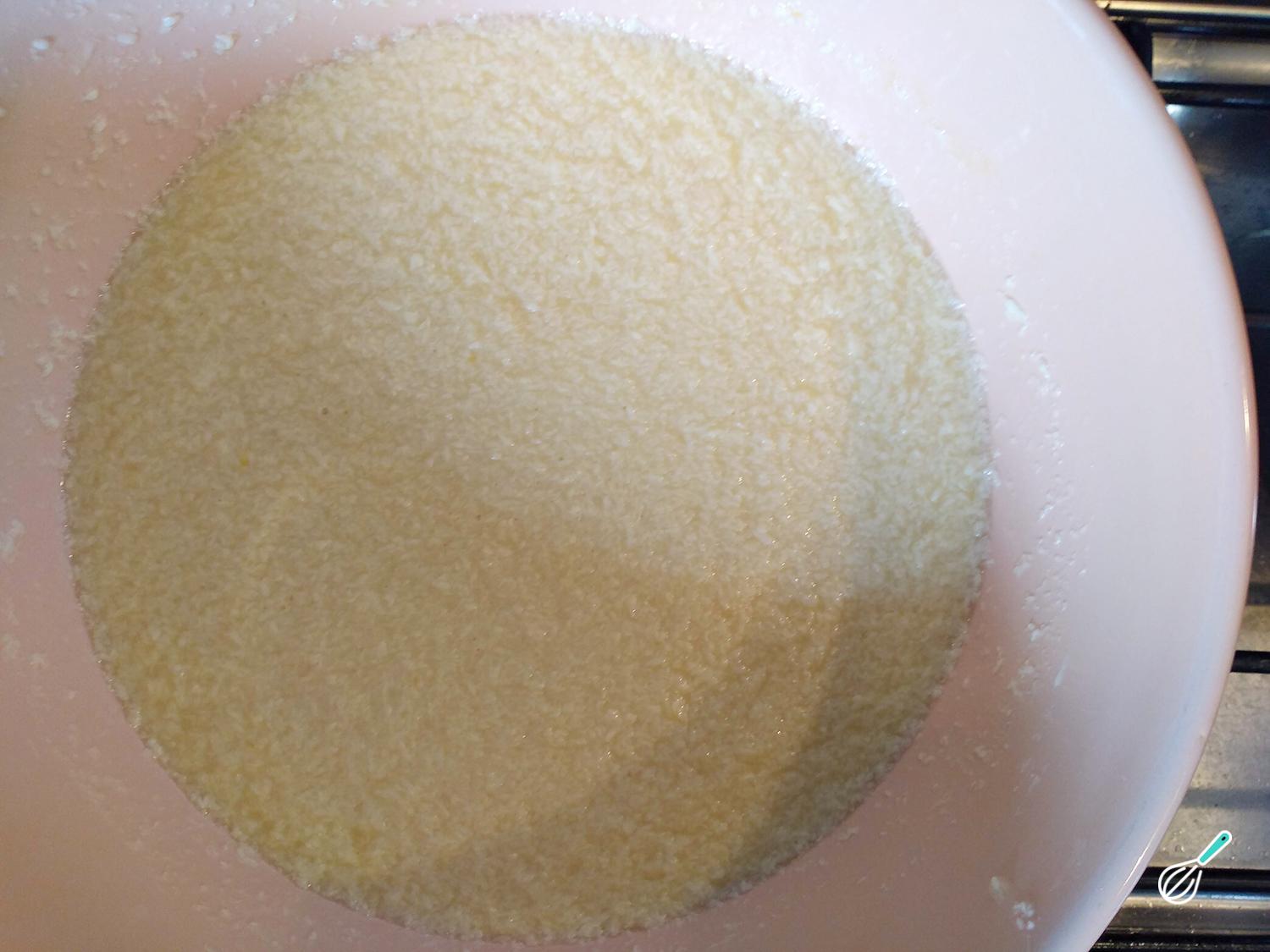 Dica: É normal que, neste passo, a mistura fique talhada como na fotografia. No entanto não se preocupe, continue preparando esta receita de sonho de padaria frito do jeito indicado e no final dará muito certo.
