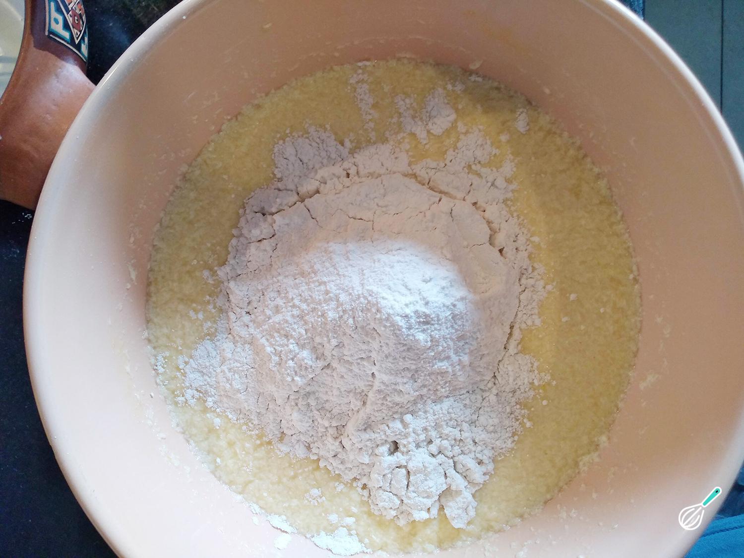 Adicione farinha previamente peneirada, para evitar gruminhos nessa massa para sonho frito. Incorpore delicadamente, assim você vai conseguir uma massa mais suave e fofinha.