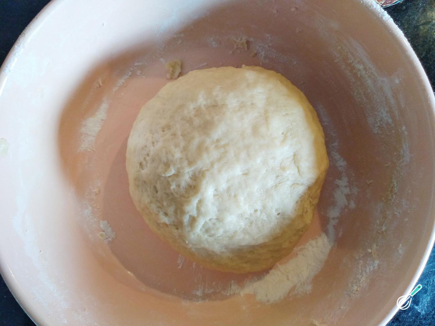 Quando você ver sua massa de sonho preparada, forme uma bola e deixe que repouse para aumentar o volume.