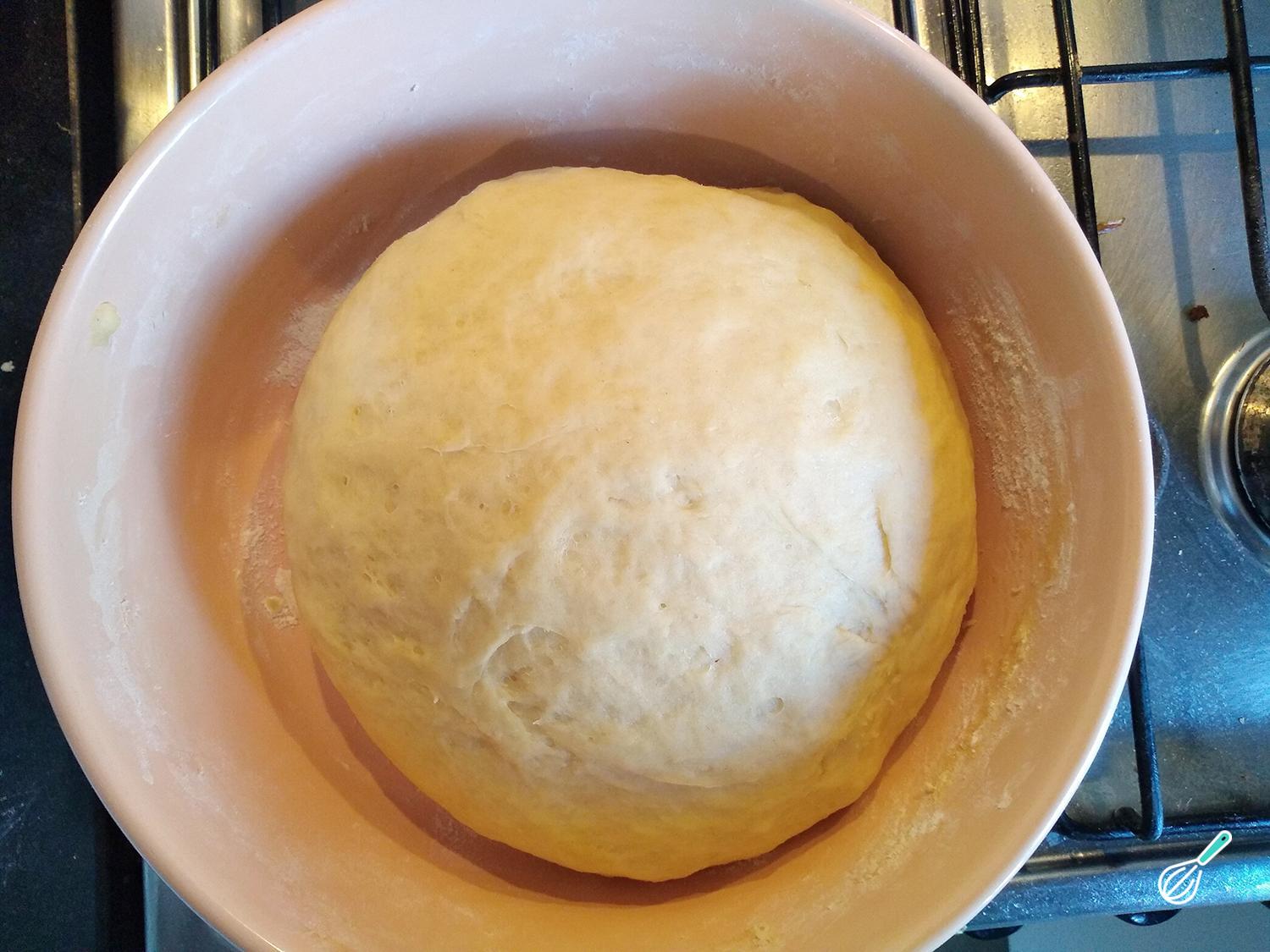 Dica: A massa aumentará seu volume mais rapidamente se for mantida em um local quente. Para facilitar isso você pode ligar o forno até esquentar um pouco, desligar e guardar a massa dentro dele.