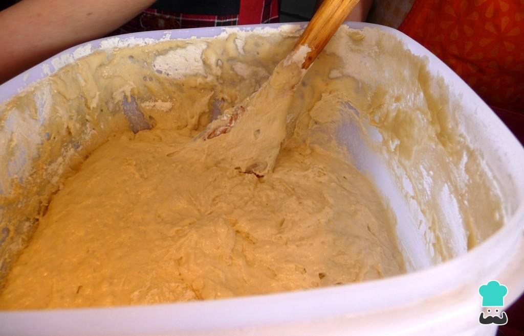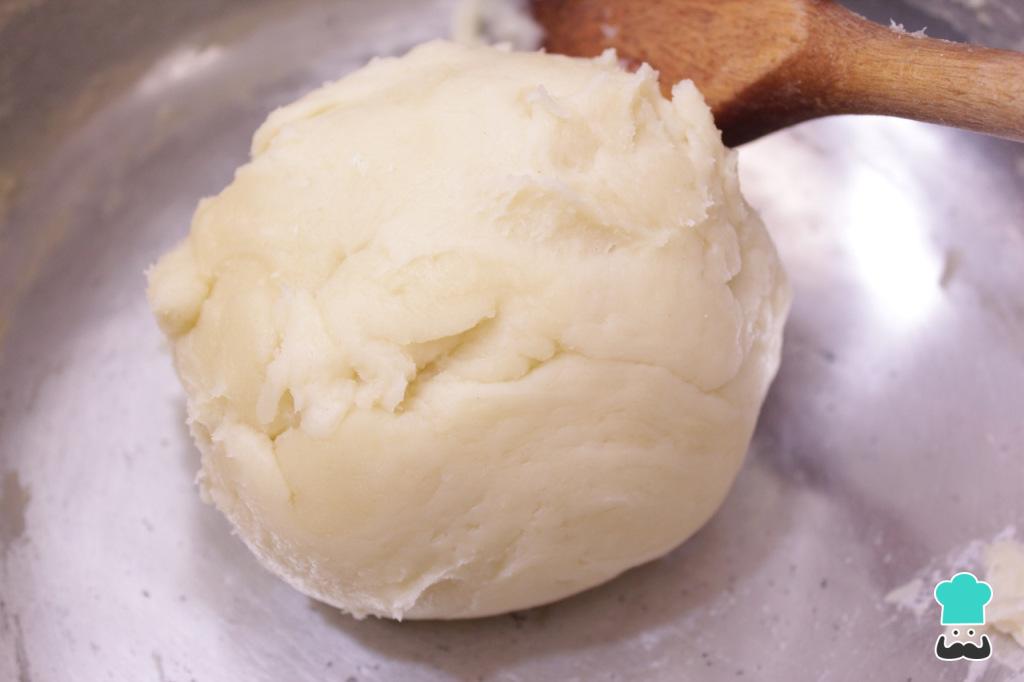 Quando a massa estiver fria, adicione os ovos um a um enquanto mexe com a colher de pau ou com as mãos, até que os ovos fiquem completamente incorporados. Deixe repousar por 15 minutos.