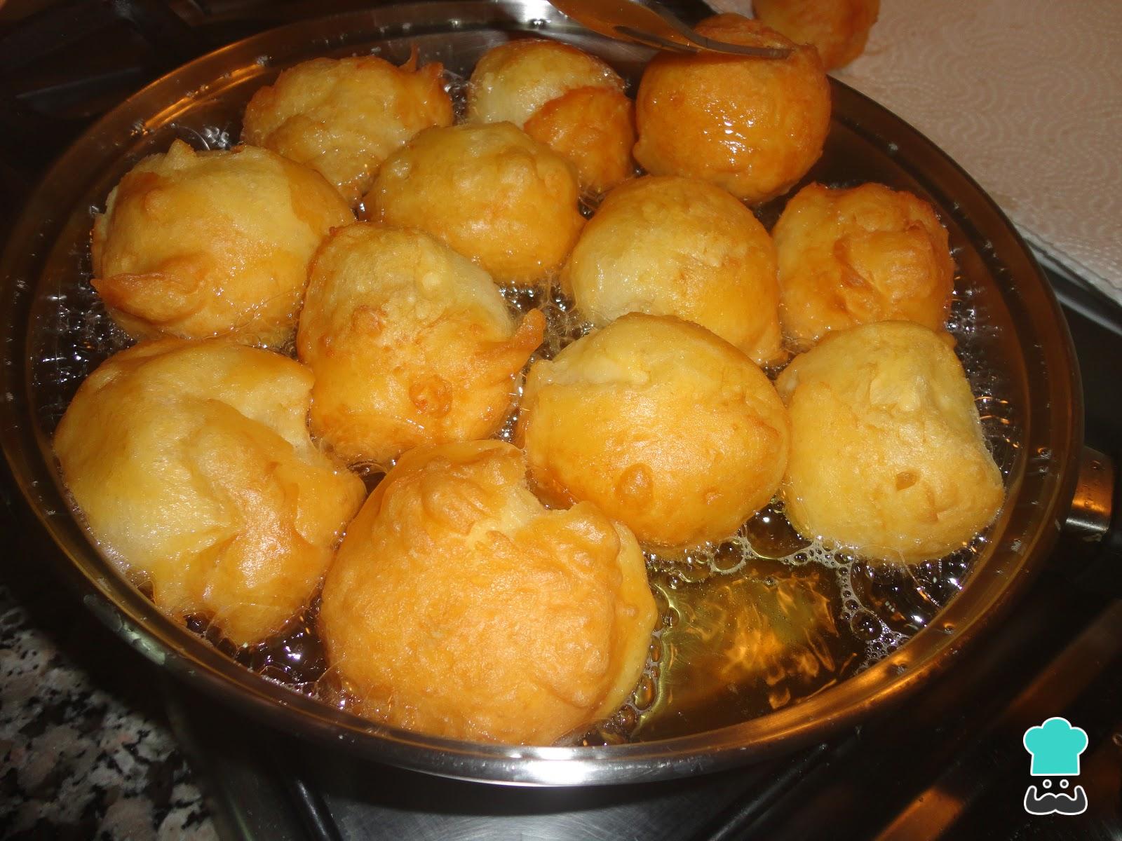 Esquente o óleo em fogo médio e, quando estiver bem quente, adicione porções de massa em forma de bolinha (modele com a ajuda de duas colheres). Enquanto a massa frita, pique com um garfo, para que o ar saia e ela possa crescer.