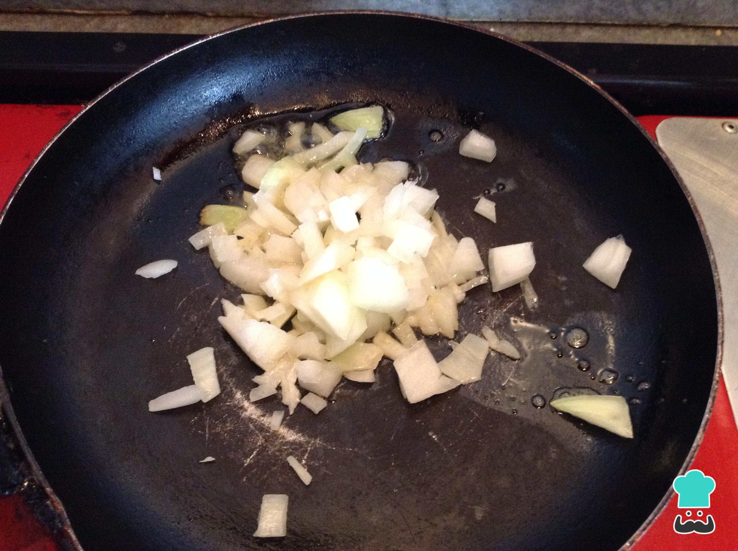 Leve uma frigideira ao fogo médio, adicione o óleo e frite a cebola por 3-5 minutos, aproximadamente.
