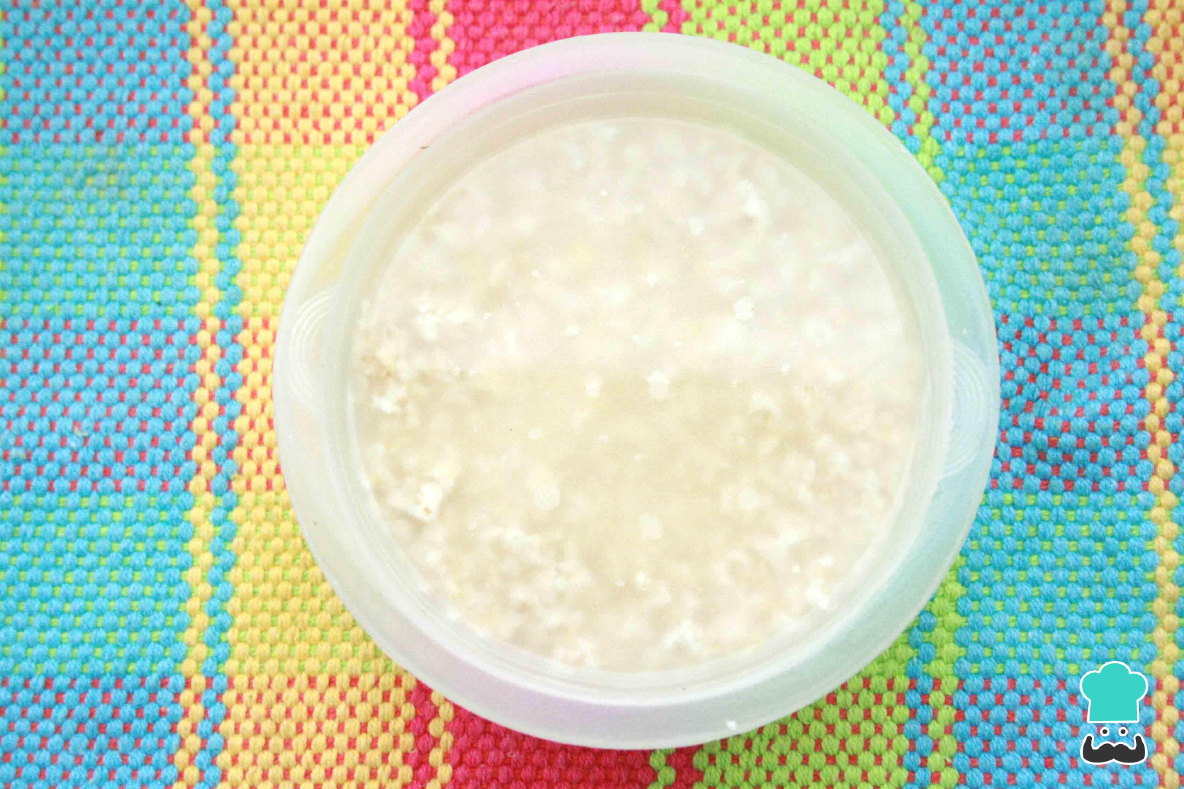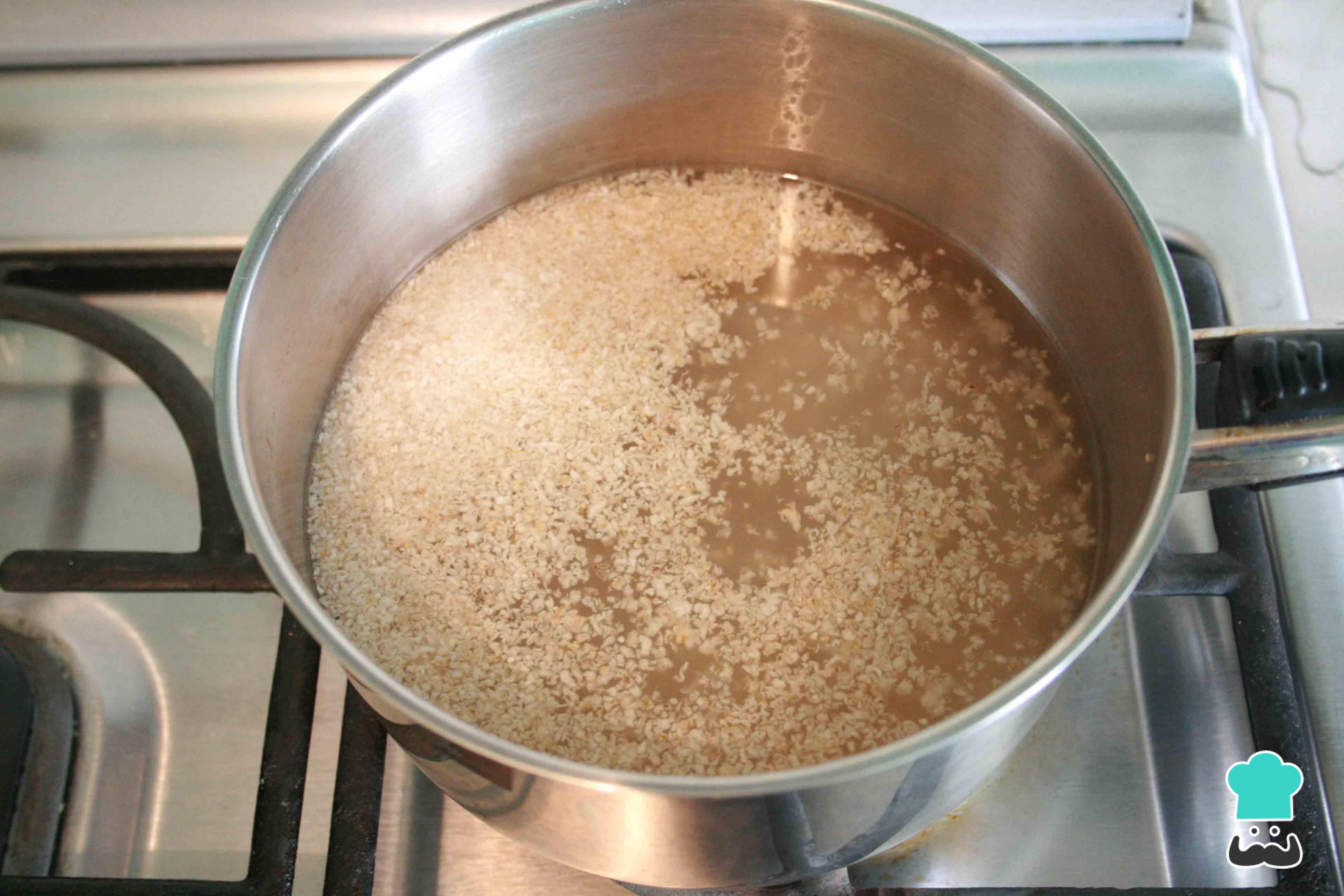 No dia anterior ao preparo desta sopa ou algumas horas antes coloque a aveia hidratando em água. Depois escorra essa água, lave a aveia com a ajuda de uma peneira e reserve.