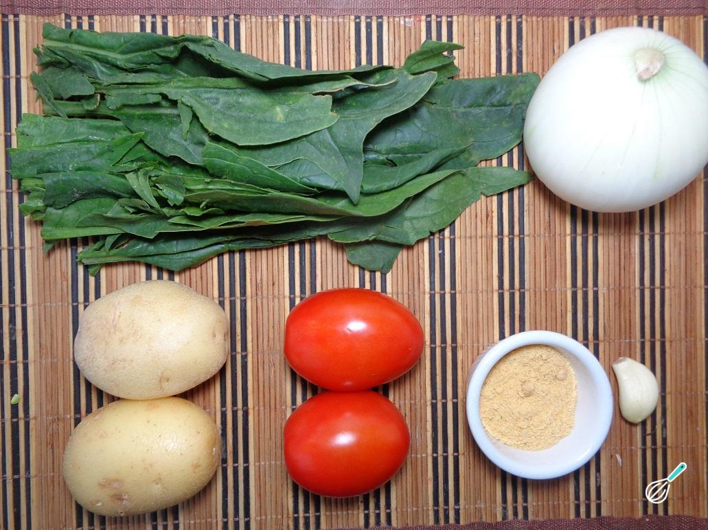 Para esta receita de sopa de batata com espinafre são necessários os ingredientes que pode ver na foto abaixo. Como pode verificar, todos os produtos são fáceis de conseguir e nutritivos. Em resumo, pode-se dizer que o espinafre por ser rico em fibra, favorece o trânsito intestinal e melhora a digestão, é uma excelente fonte de vitaminas e minerais como o cálcio. A batata também contêm vitamina C, B e minerais como o ferro e o potássio.